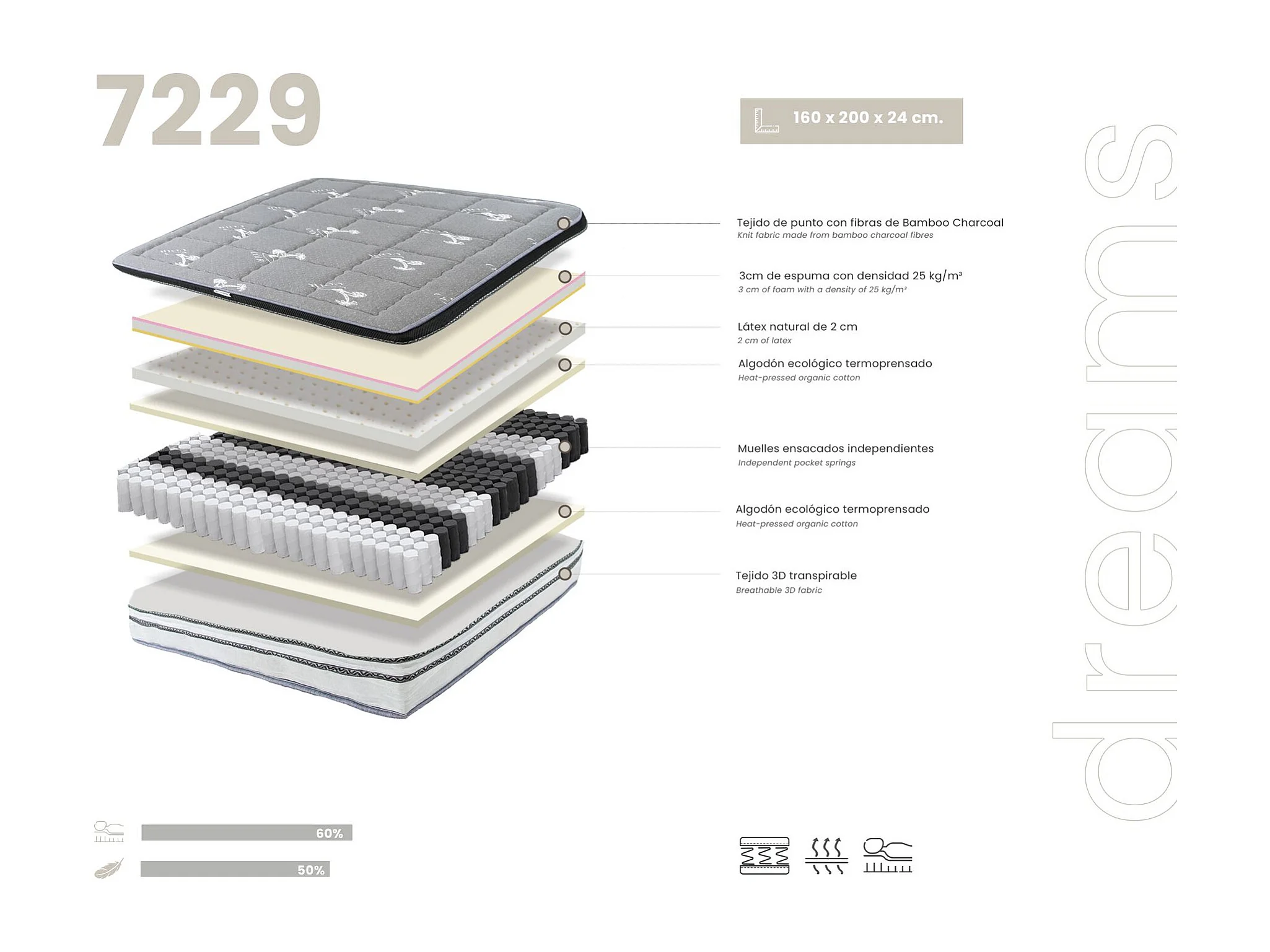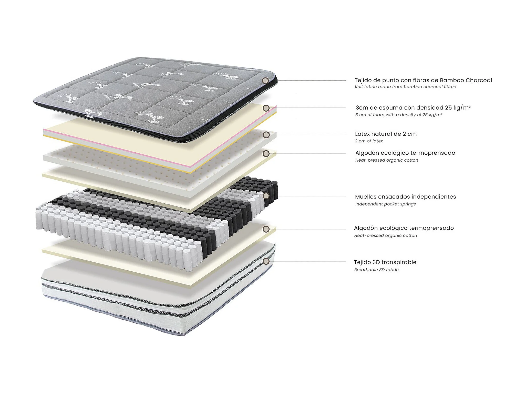 Hybridmatratze aus Naturlatex mit unabhängigen Taschenfedern 160x200 7229 ANGEL CERDA