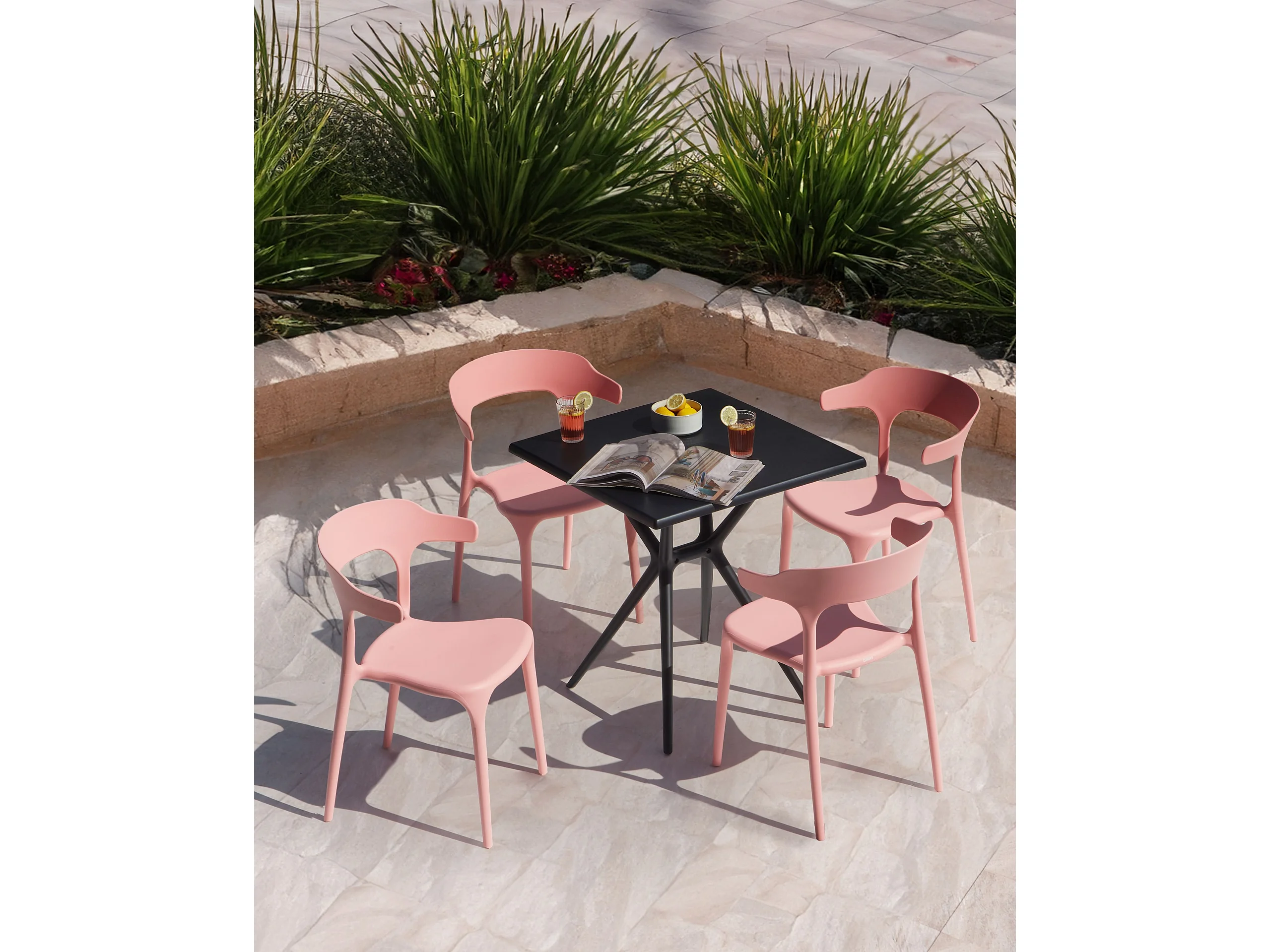 Indoor und Outdoor Stuhl 4er Set Kunststoff rosa stapelbar Skandi modern Gubbio