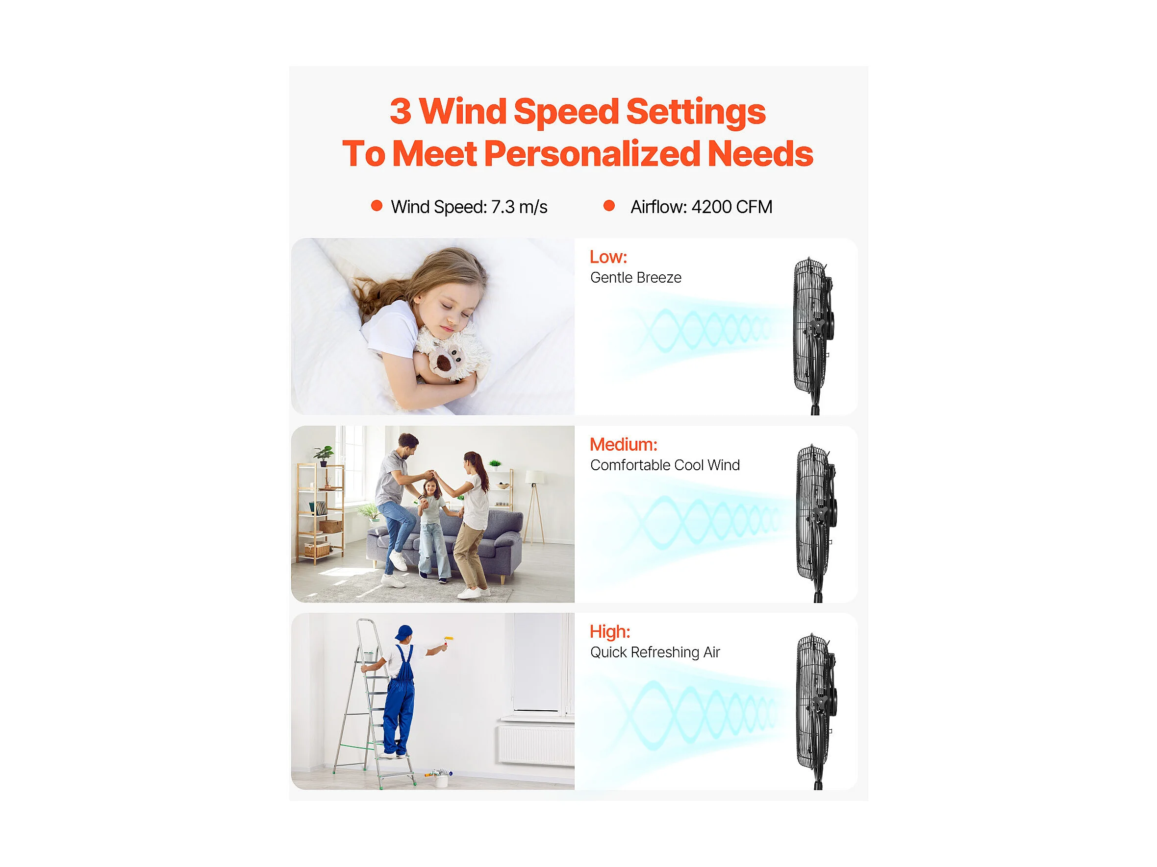 Industrie Standventilator SucceBuy , 3 Geschwindigkeiten, 56 cm, Höhenverstellbar 115-147 cm
