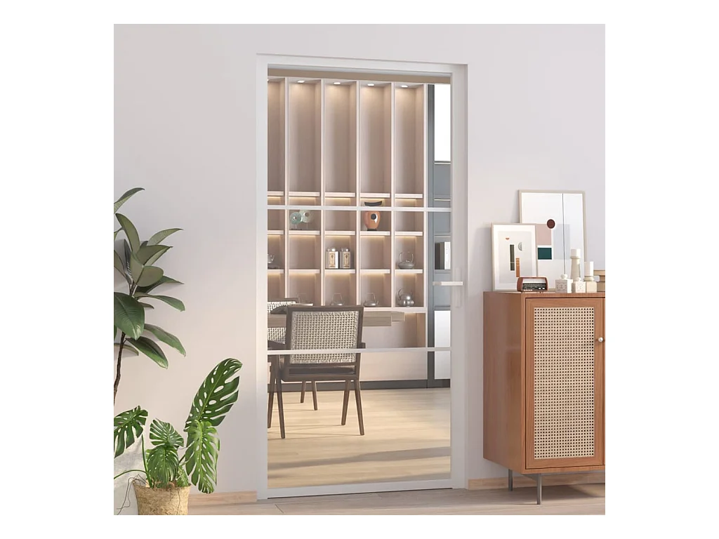Innentür 102,5x201,5 cm Weißes ESG-Glas und Aluminium