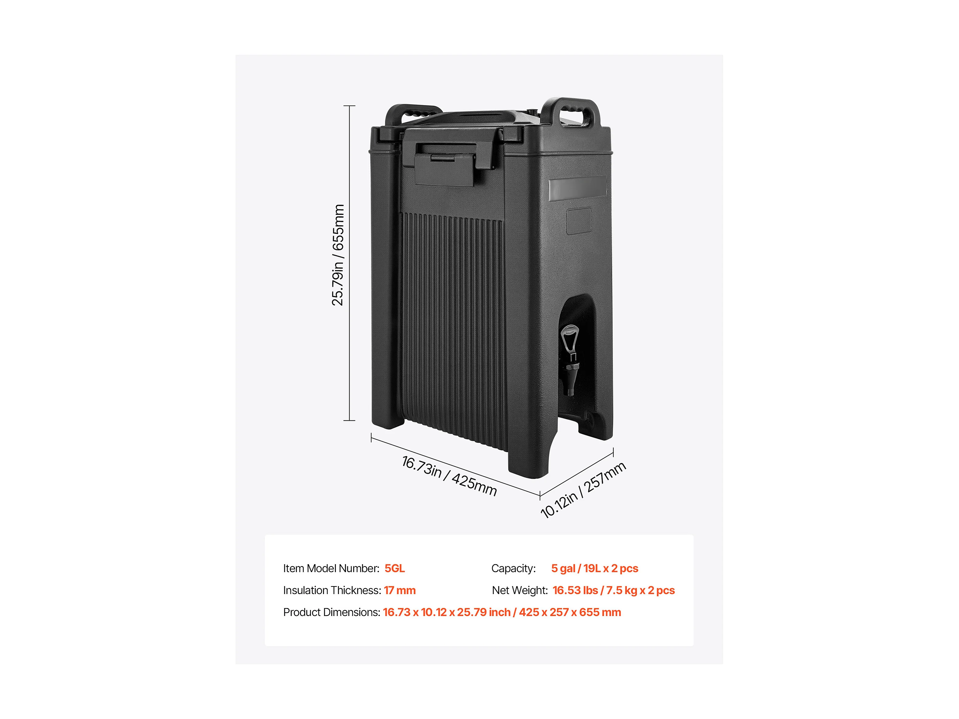 Isolierter Getränkespender SucceBuy 19 L, Nicht-Elektrischer Warm- und Kaltwasserbrunnen mit Hahn und Griff, Isolierbehälter