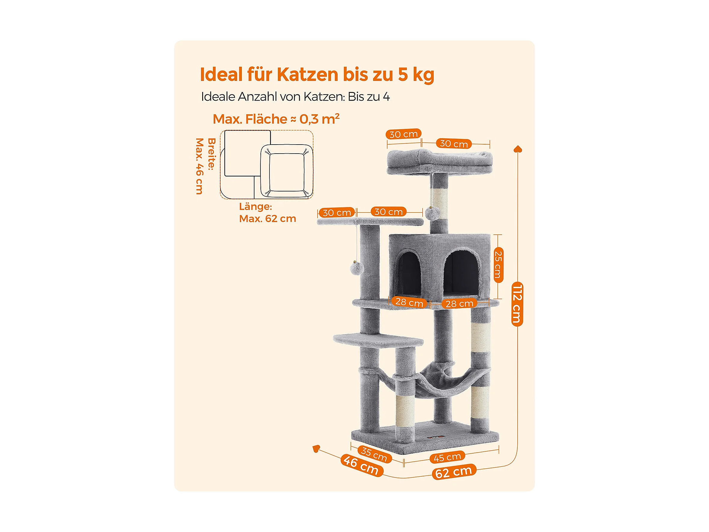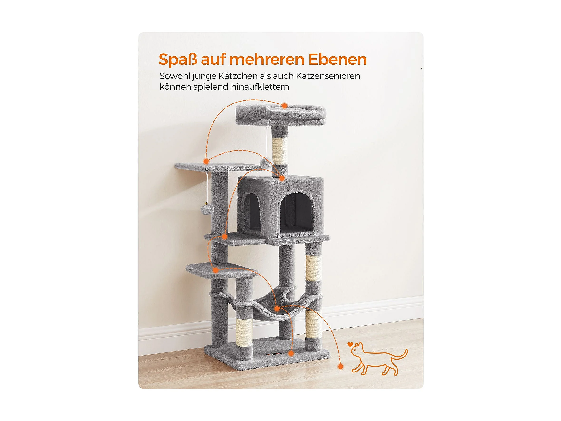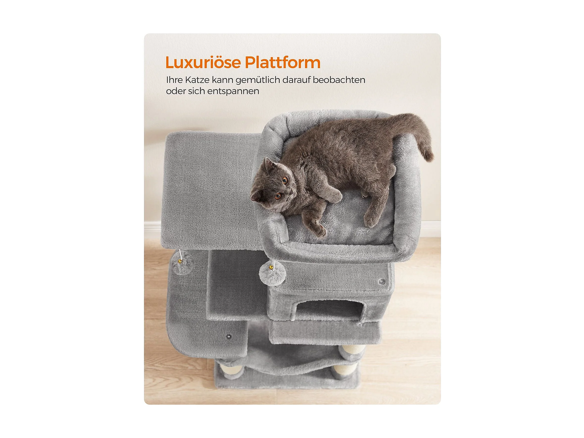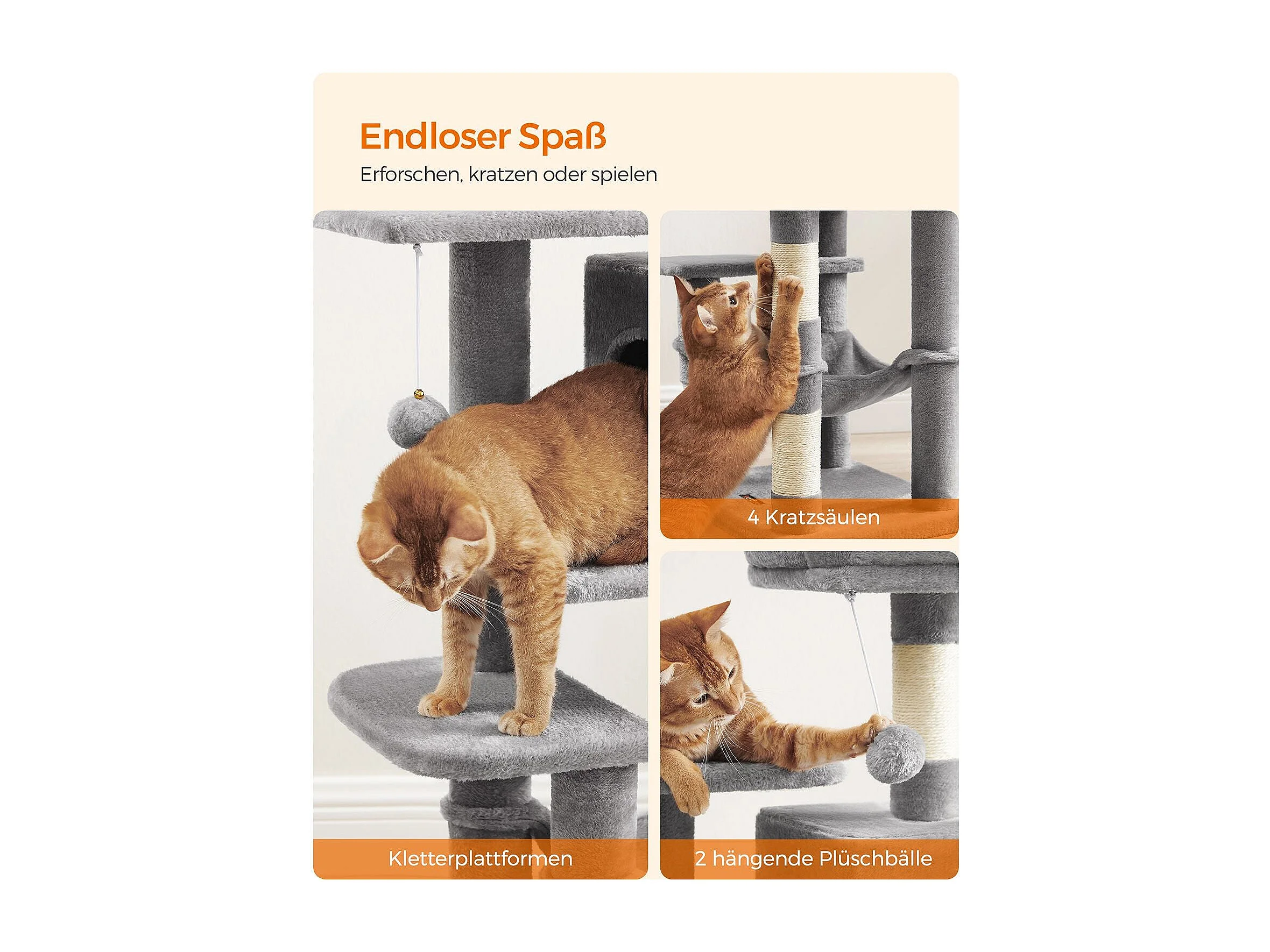 178 cm Katzenbaum mit Sisal-Kratzsäulen & 3 Warmen Liegeflächen & Plüschbälle Grau