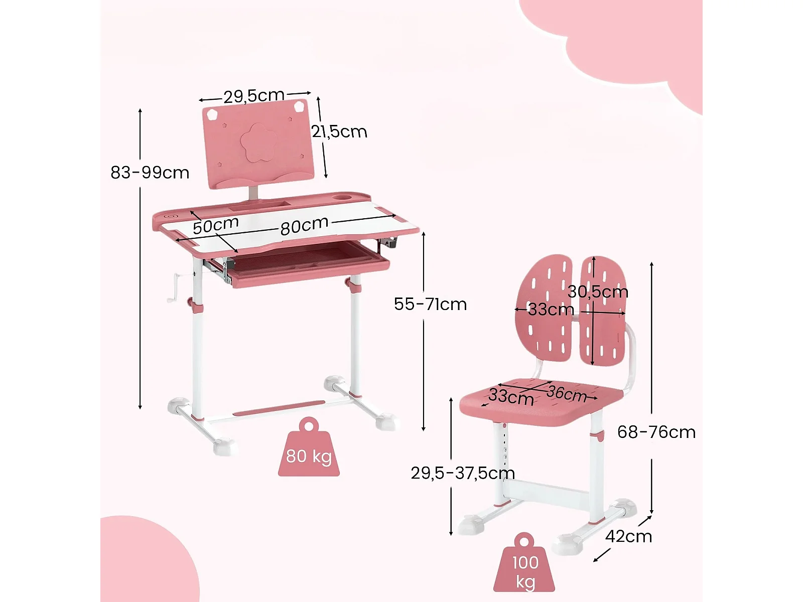 Kinder Schreibtisch mit Stuhl Höhenverstellbarer Kinderschreibtisch mit Neigbarer Tischplatte Rose