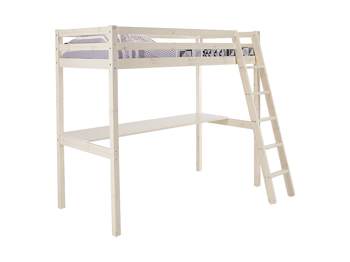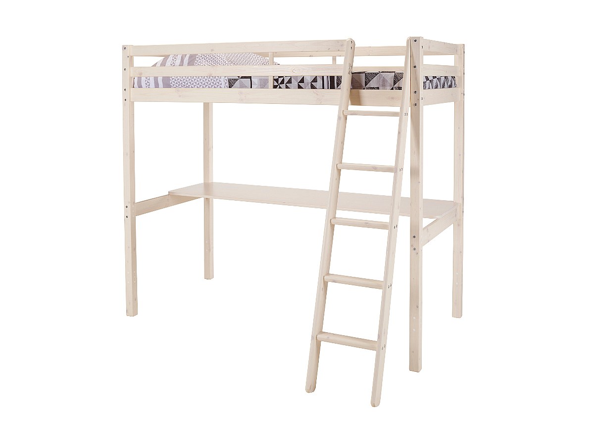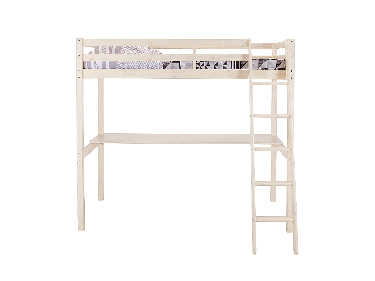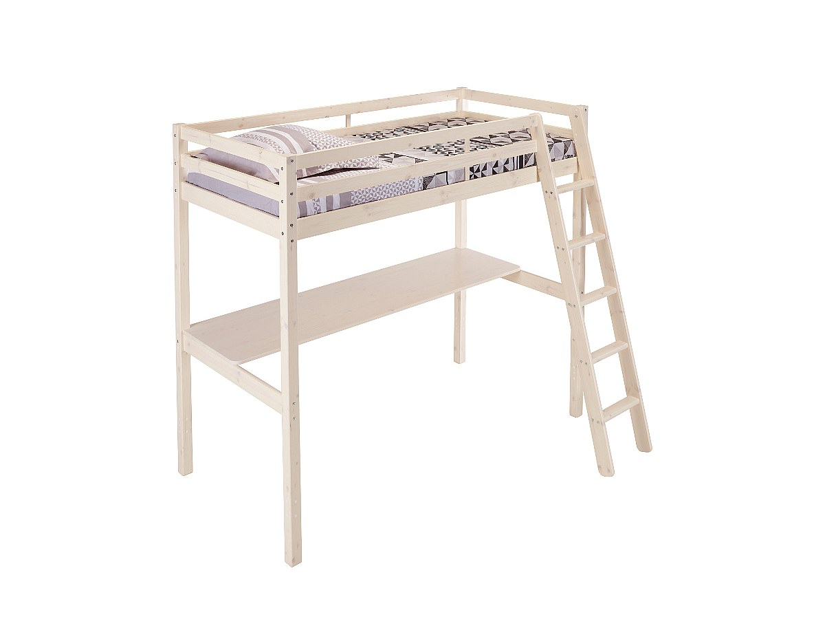 Hochbett Massivholz mit Schreibtisch GEDEON + Lattenrost - 90x190 cm
