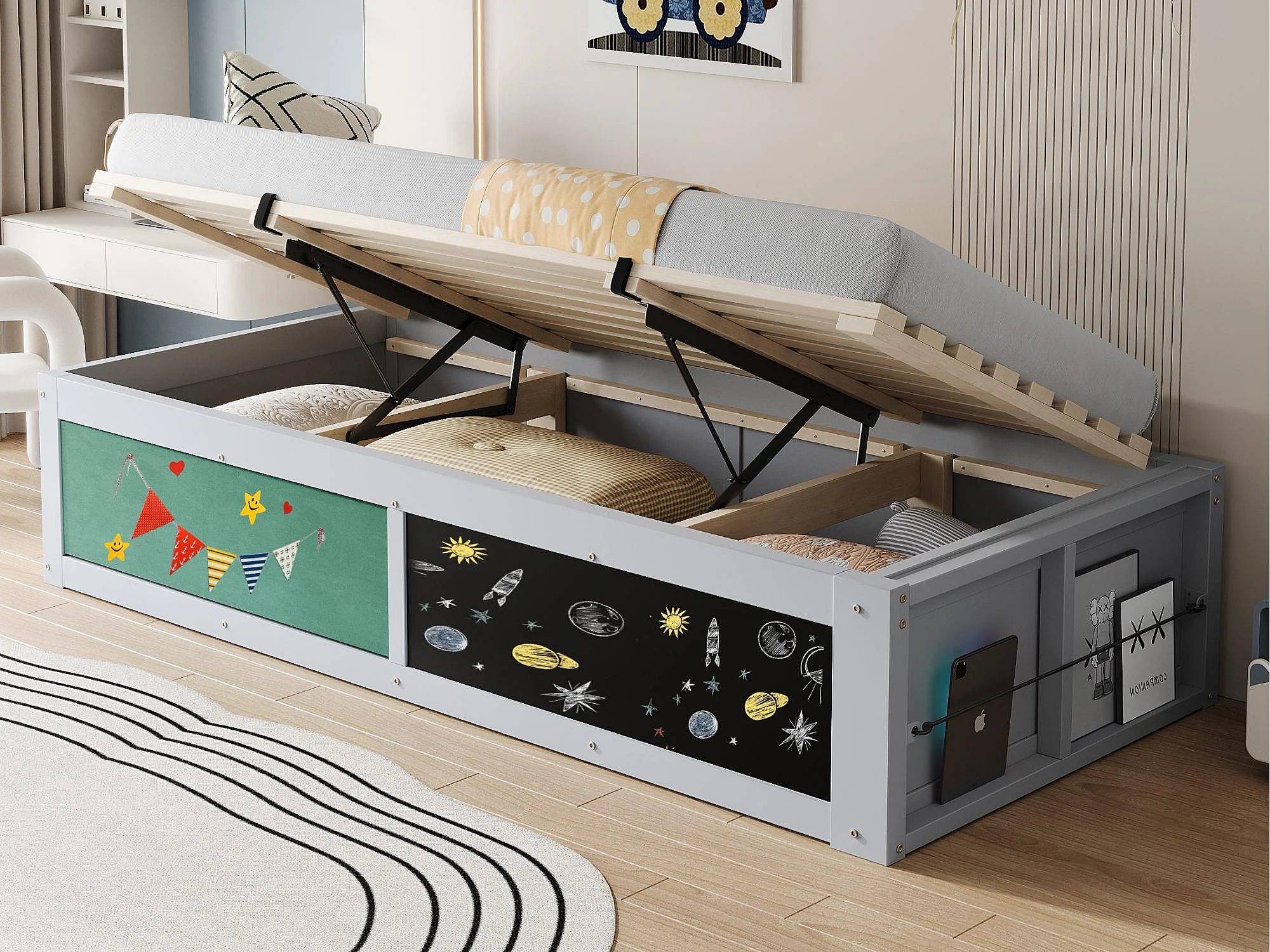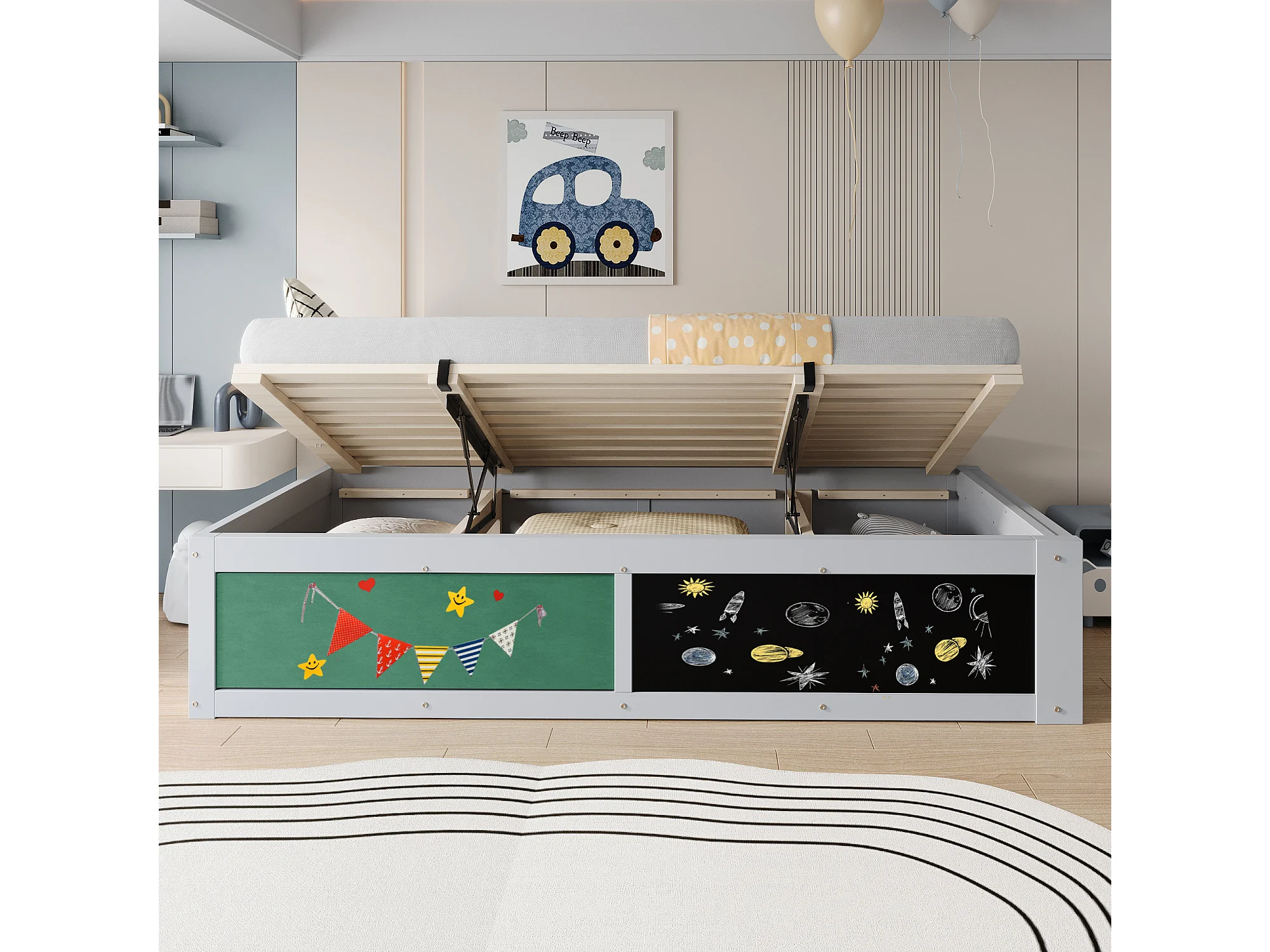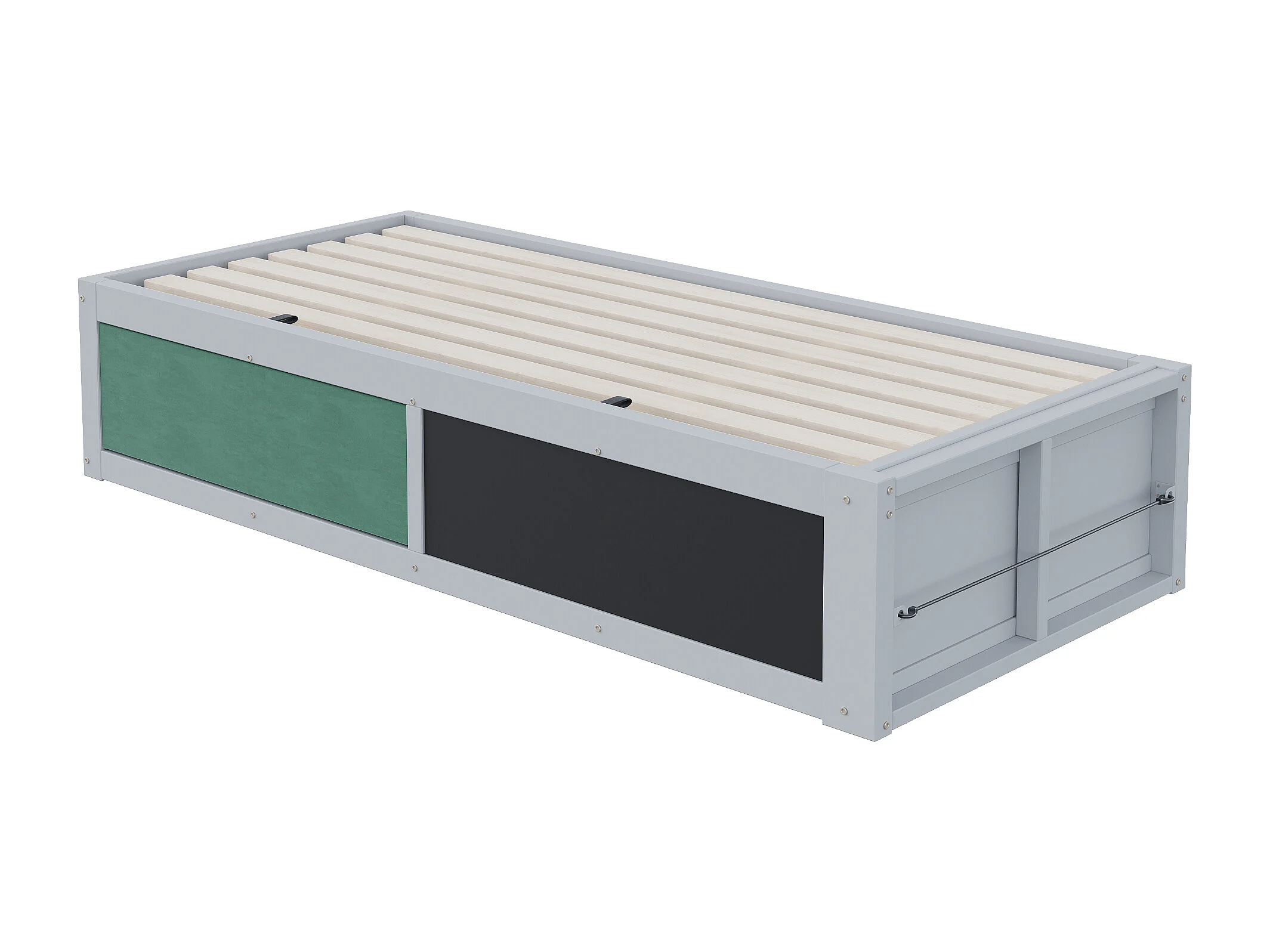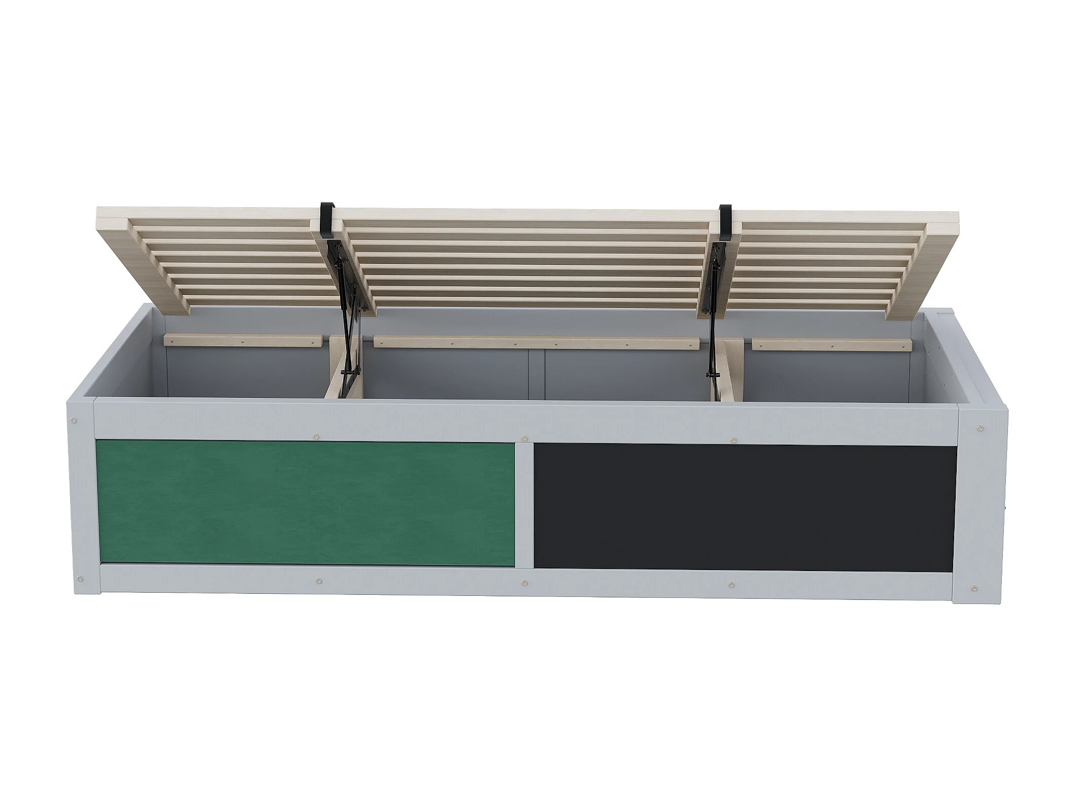 Kinderbett mit Stauraum 90x200 cm - mit einer Zeichentafel - Massivholz + MDF - Grau (Matratze nicht inbegriffen)
