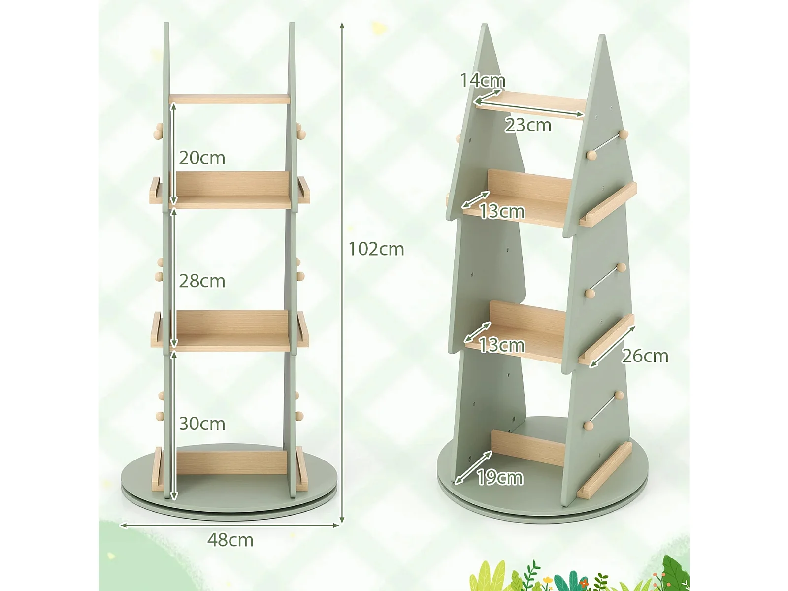 Kinderbücherregal 360° drehbar Kinder Bücherkarussell 4 Ebenen in Baumform Ø48 x 102 cm freistehendes Displayregal