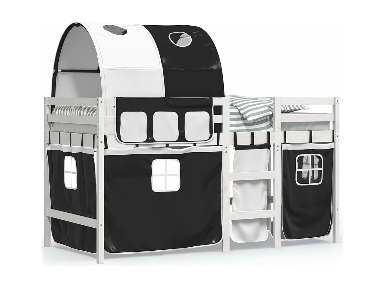 Kinderhochbett mit Tunnel Weiß & Schwarz 80x200 cm Kiefernholz
