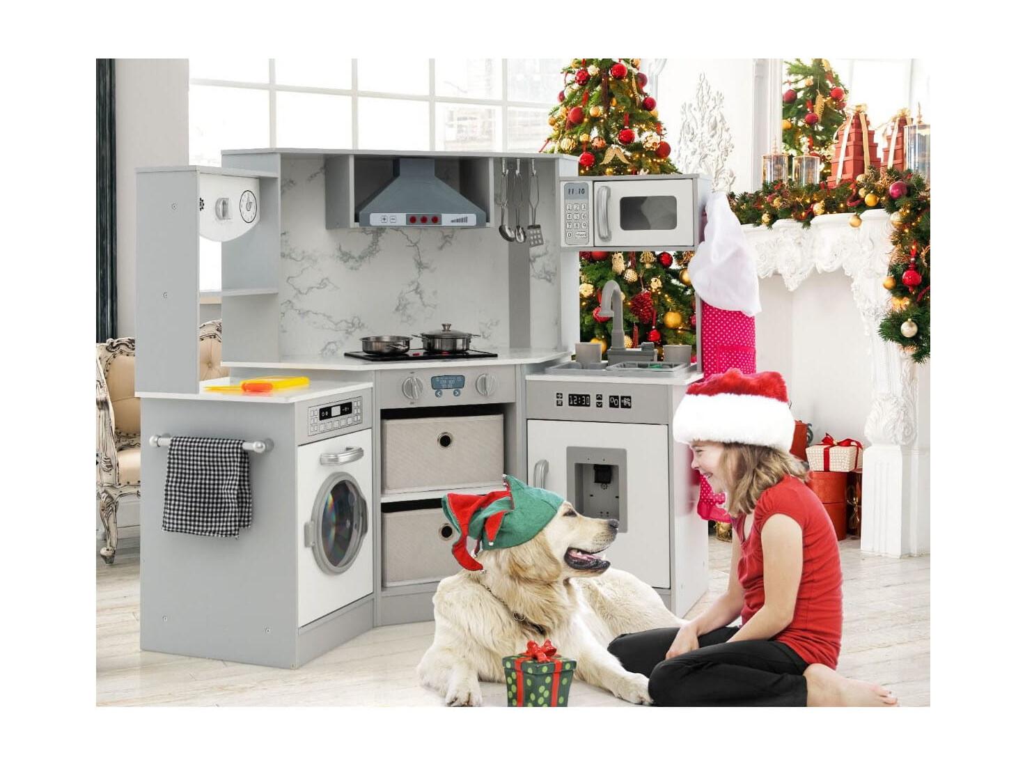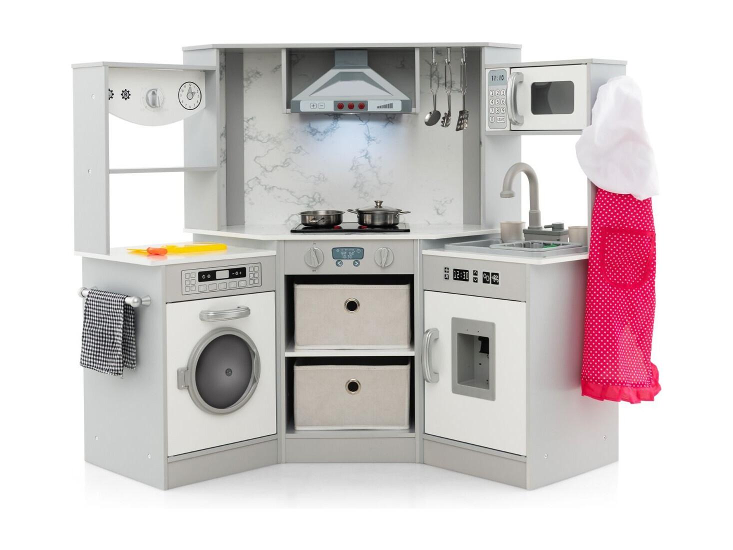 Holz Eck Kinderküche mit Licht & Sound & Tafel & Zubehör Kinderküche Spielküche Holzküche Kaffee