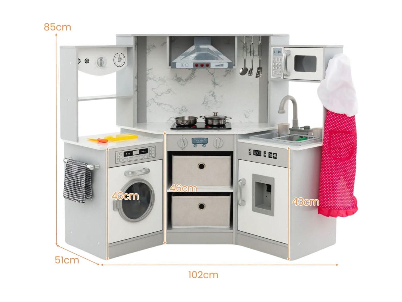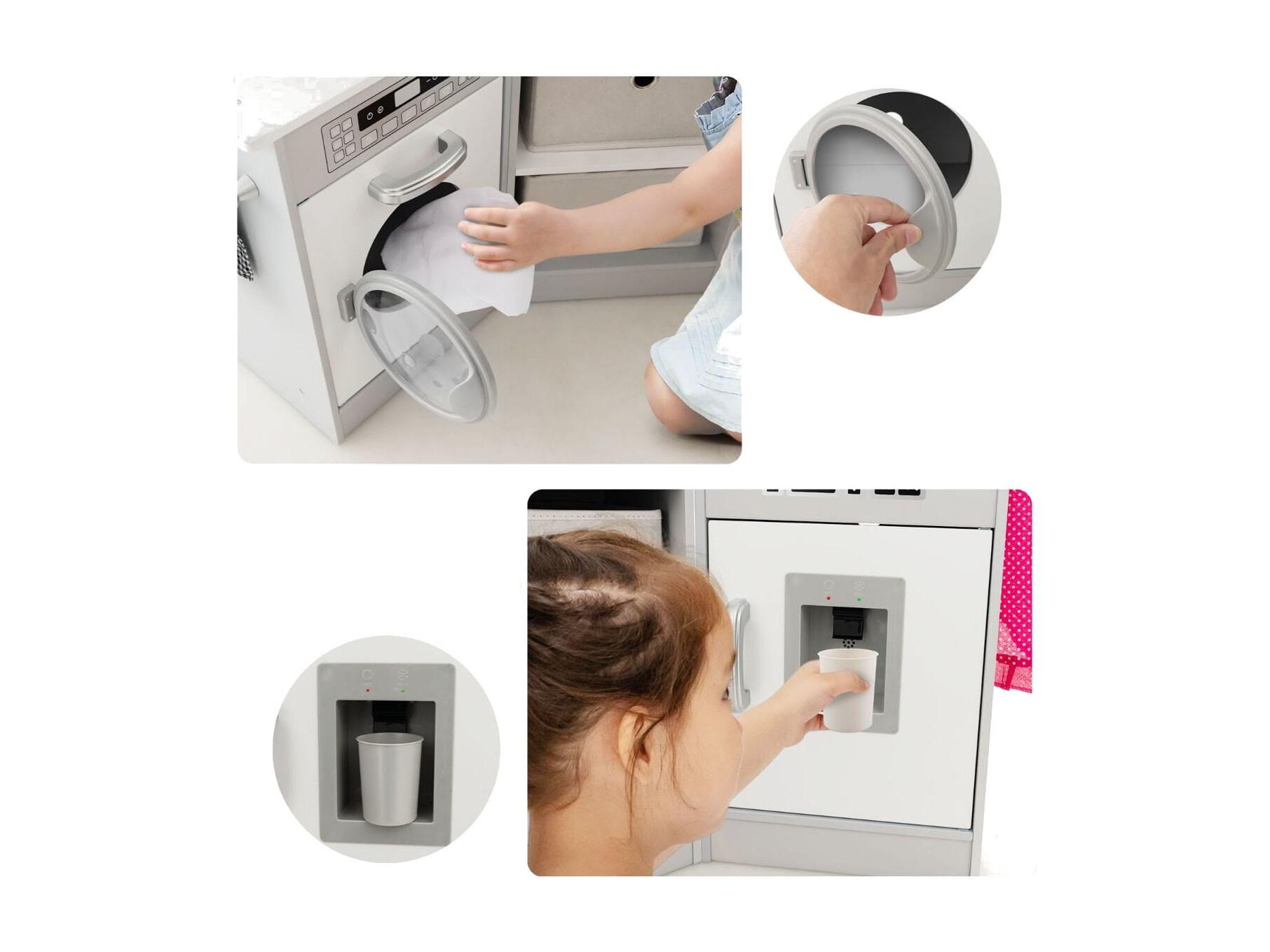 Holz Kinderküche mit Licht & Sound & Wasserspender & Waschmaschine & Zubehör Spielküche