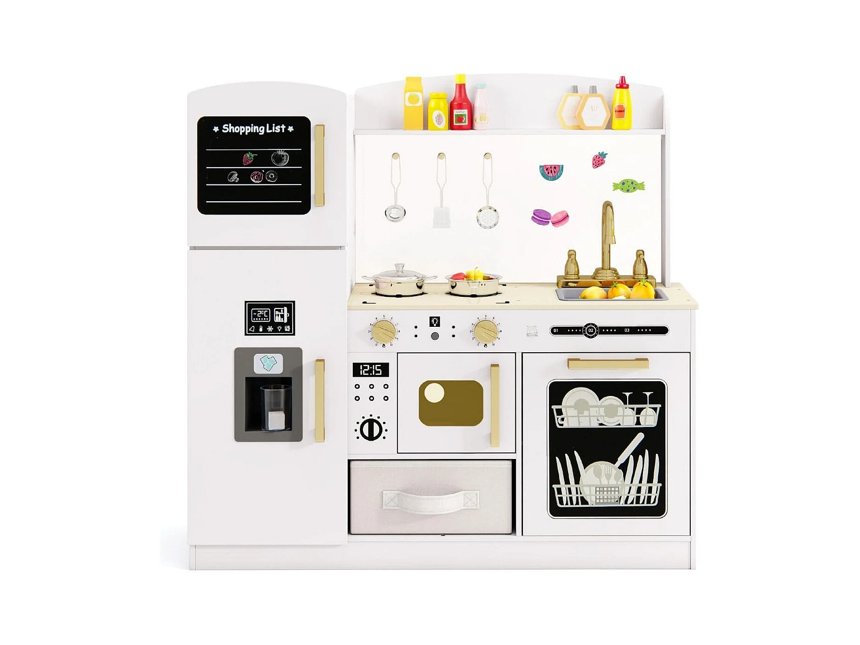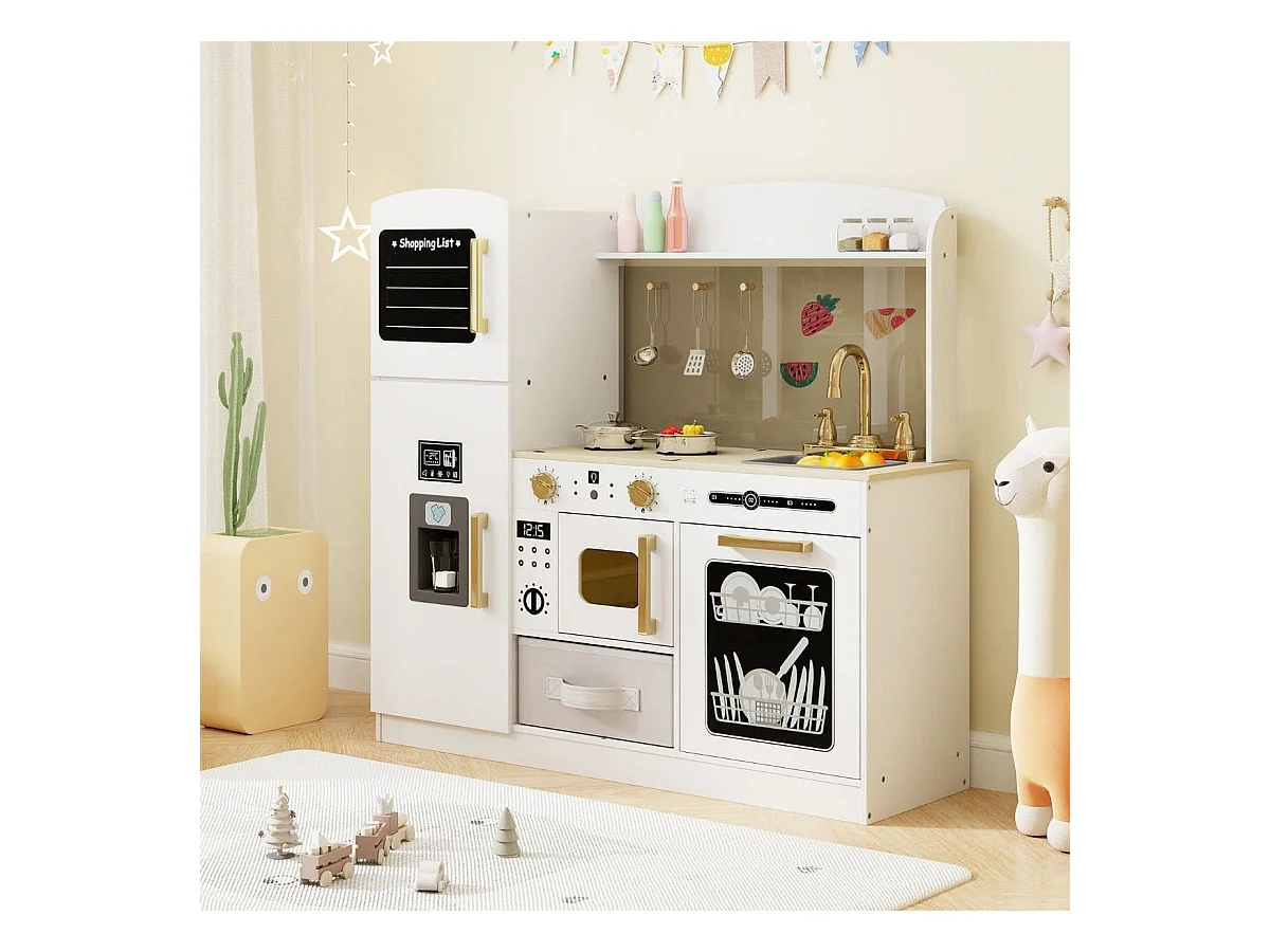 Kinderküche mit Zubehör Spielküche mit Schreibtafel Eismaschine Spüle Spielzeugküche Weiß