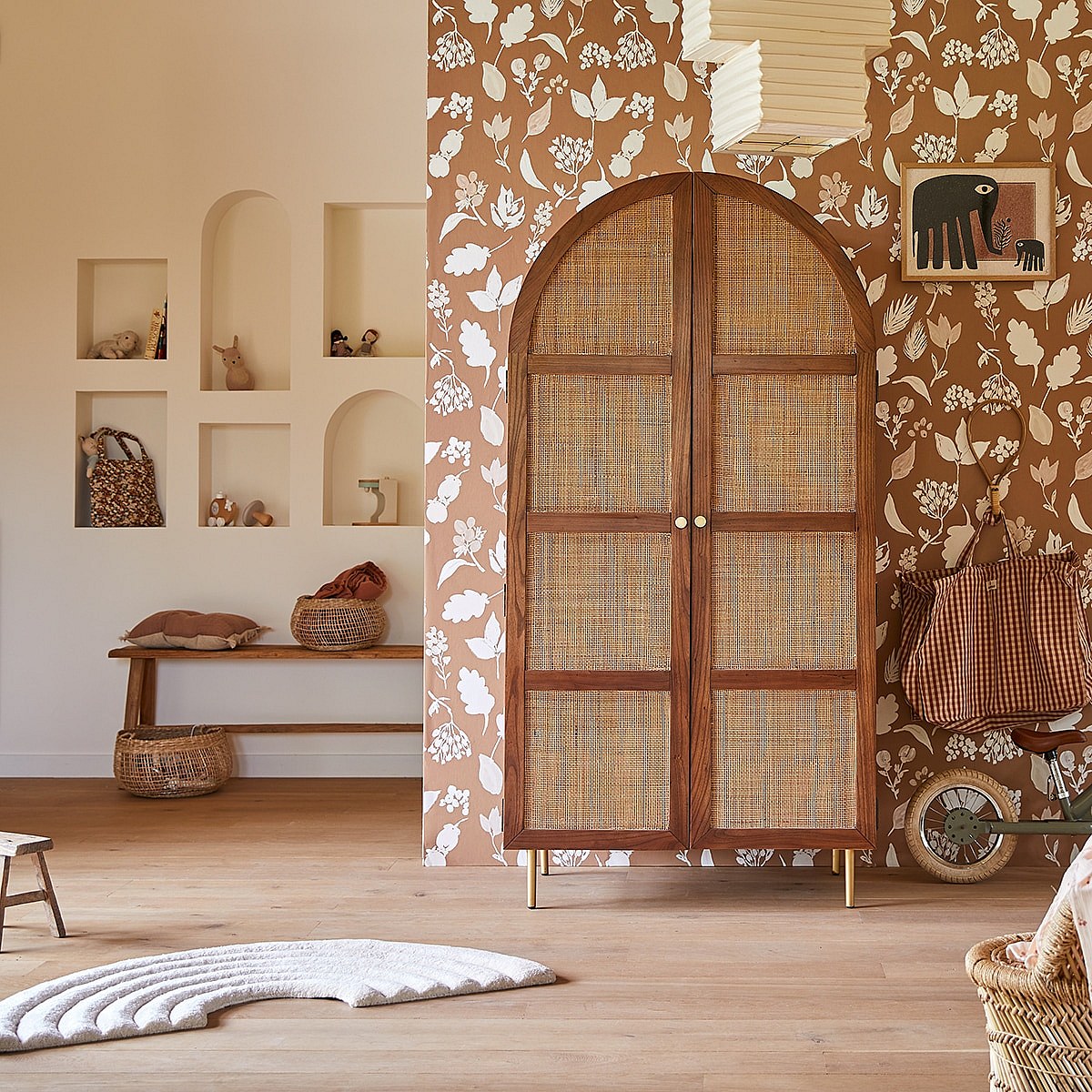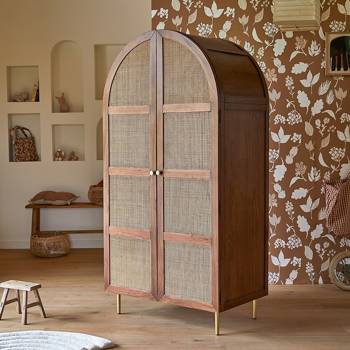 Kinderschrank Lisbeth aus Ulmenholz und Rattan