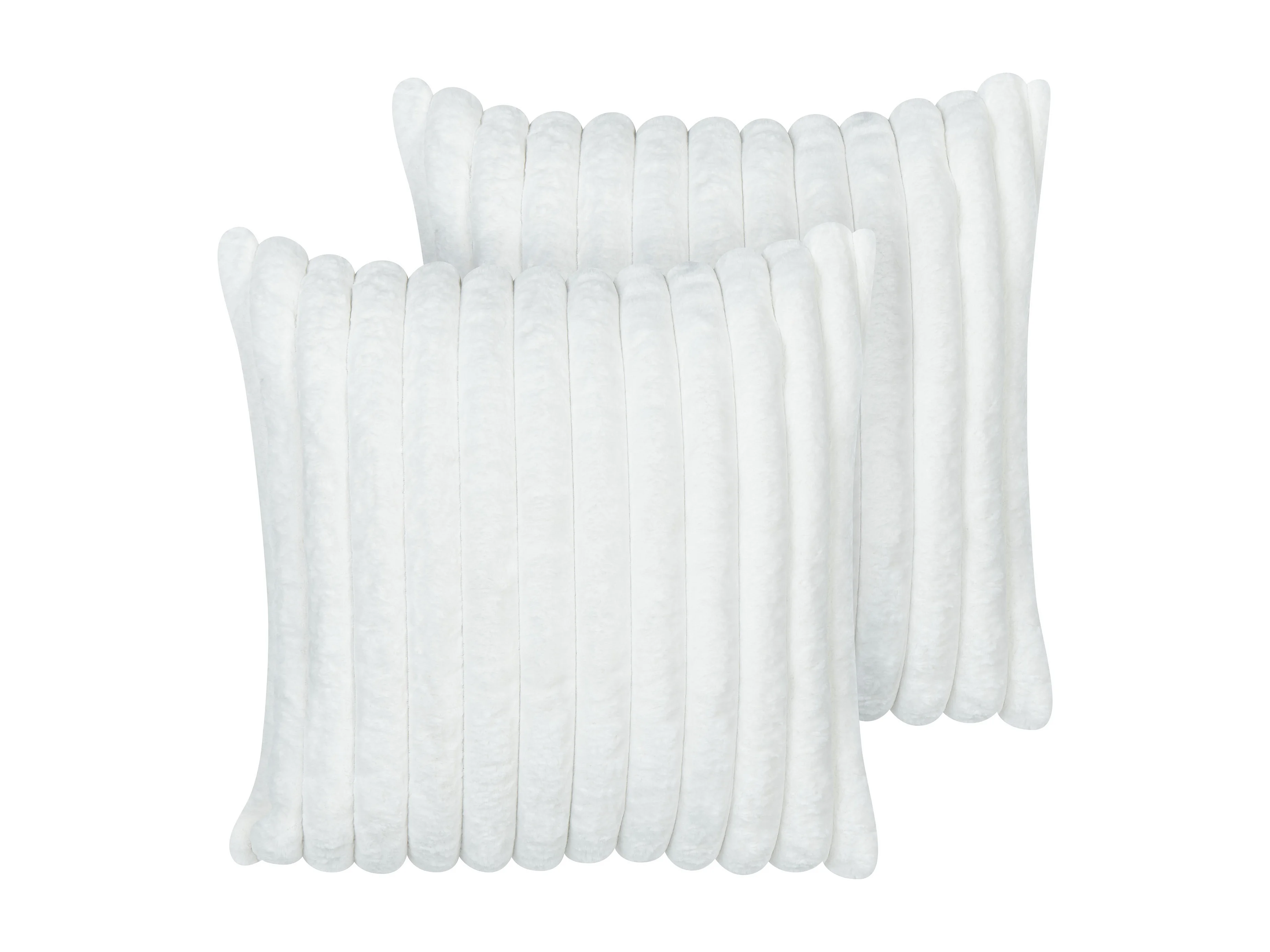 Dekokissen 2er Set RAKYA Webpelz 45 x 45 cm Weiss Streifenmuster