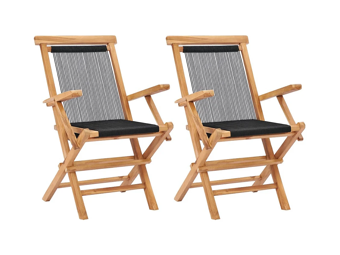 Klappbare Gartenstühle 2er-Set aus massivem Teakholz und Seil