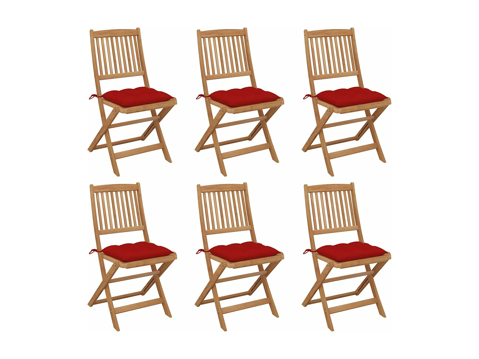Klappbare Gartenstühle 6 Stück mit Kissen aus Akazienholz