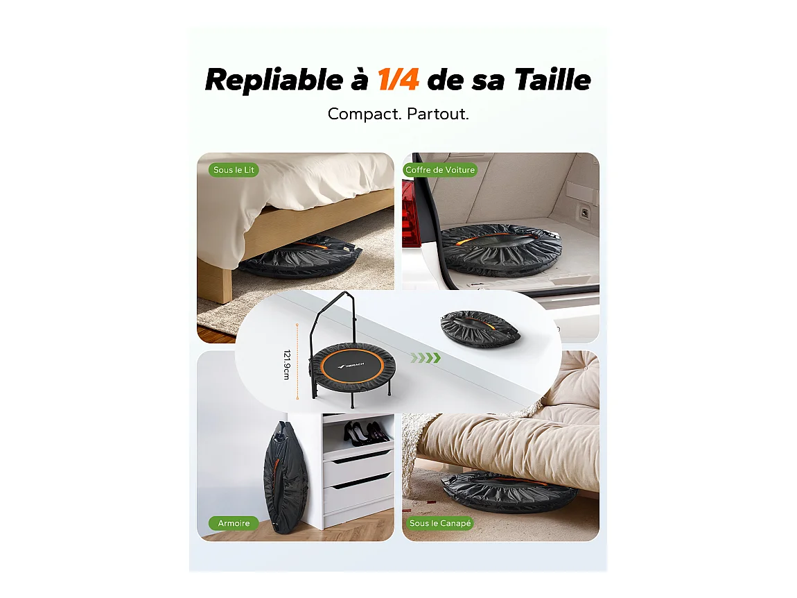 Klappbares Fitness-Trampolin Ø102 cm – Bungee-Rebounder, leise & robust, bis 150 kg, Indoor/Outdoor, ideal für Erwachsene & Kinder, mit Griff