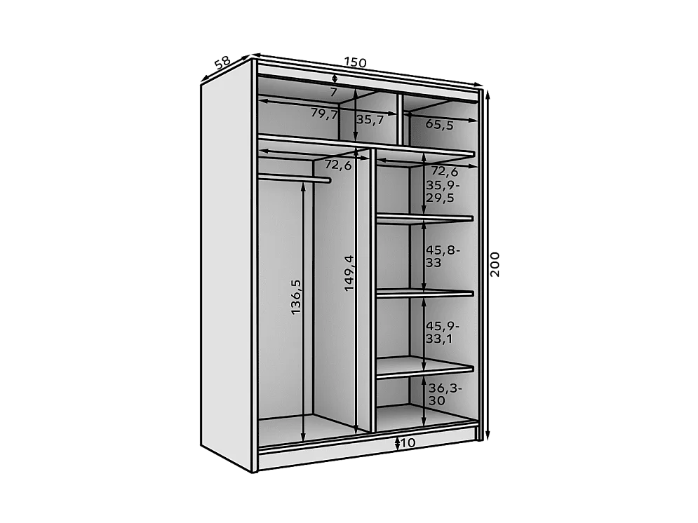 Kleiderschrank Martino (150cm)/Schiebetüren/Schwarz Weiss