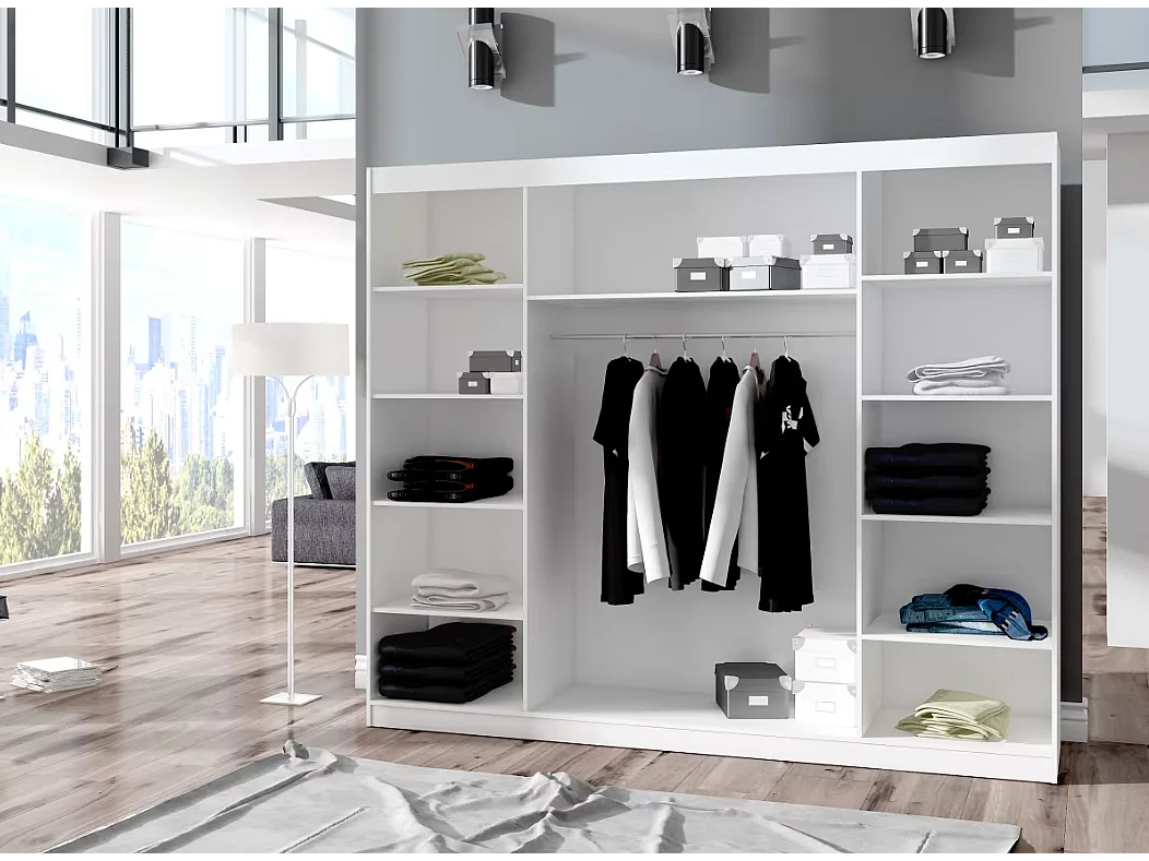 Kleiderschrank Enzo (250cm)/Schiebetüren/Spiegel/Weiss