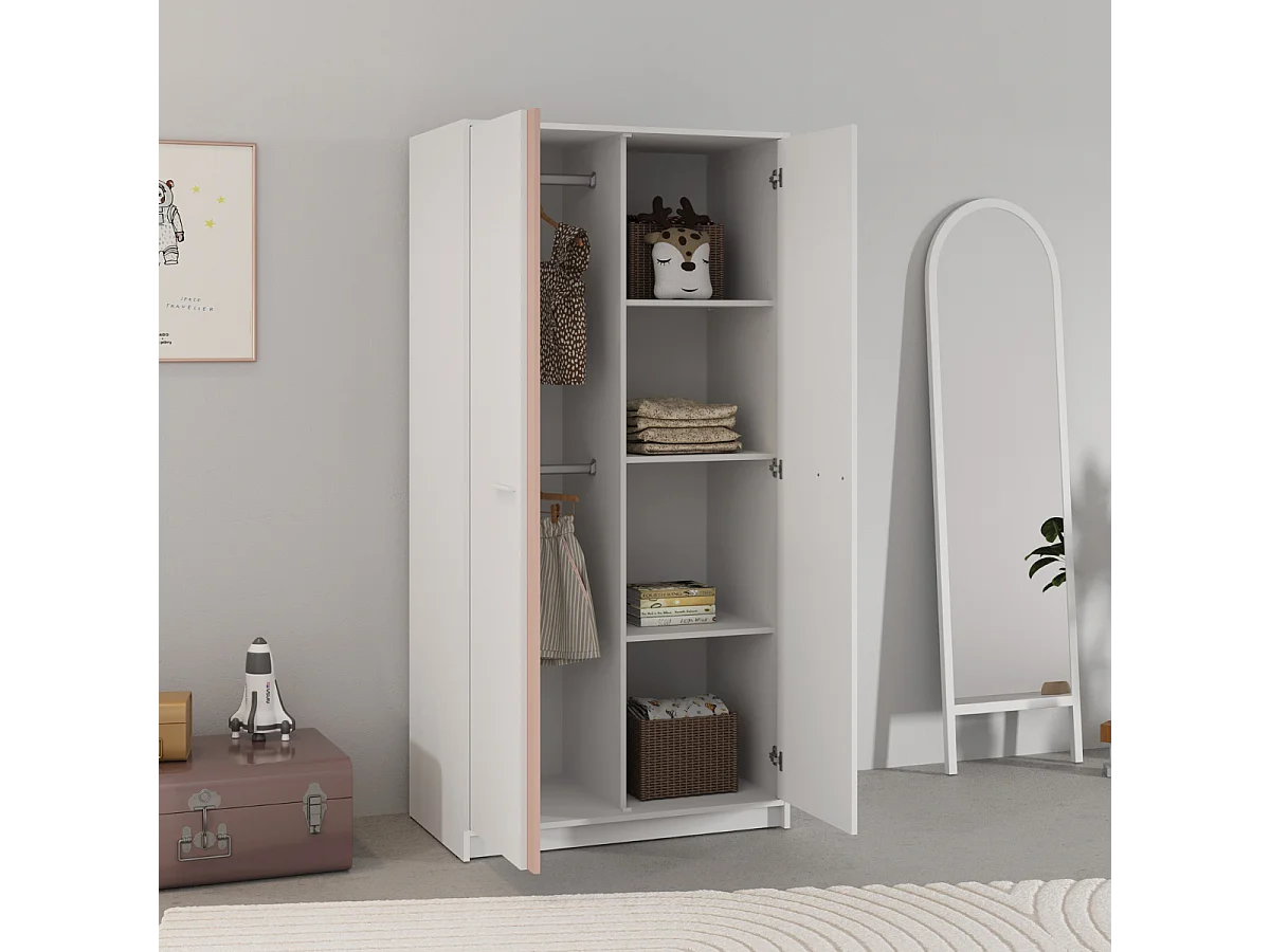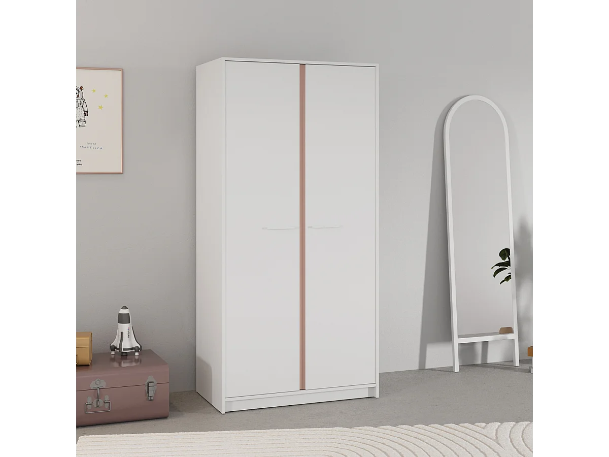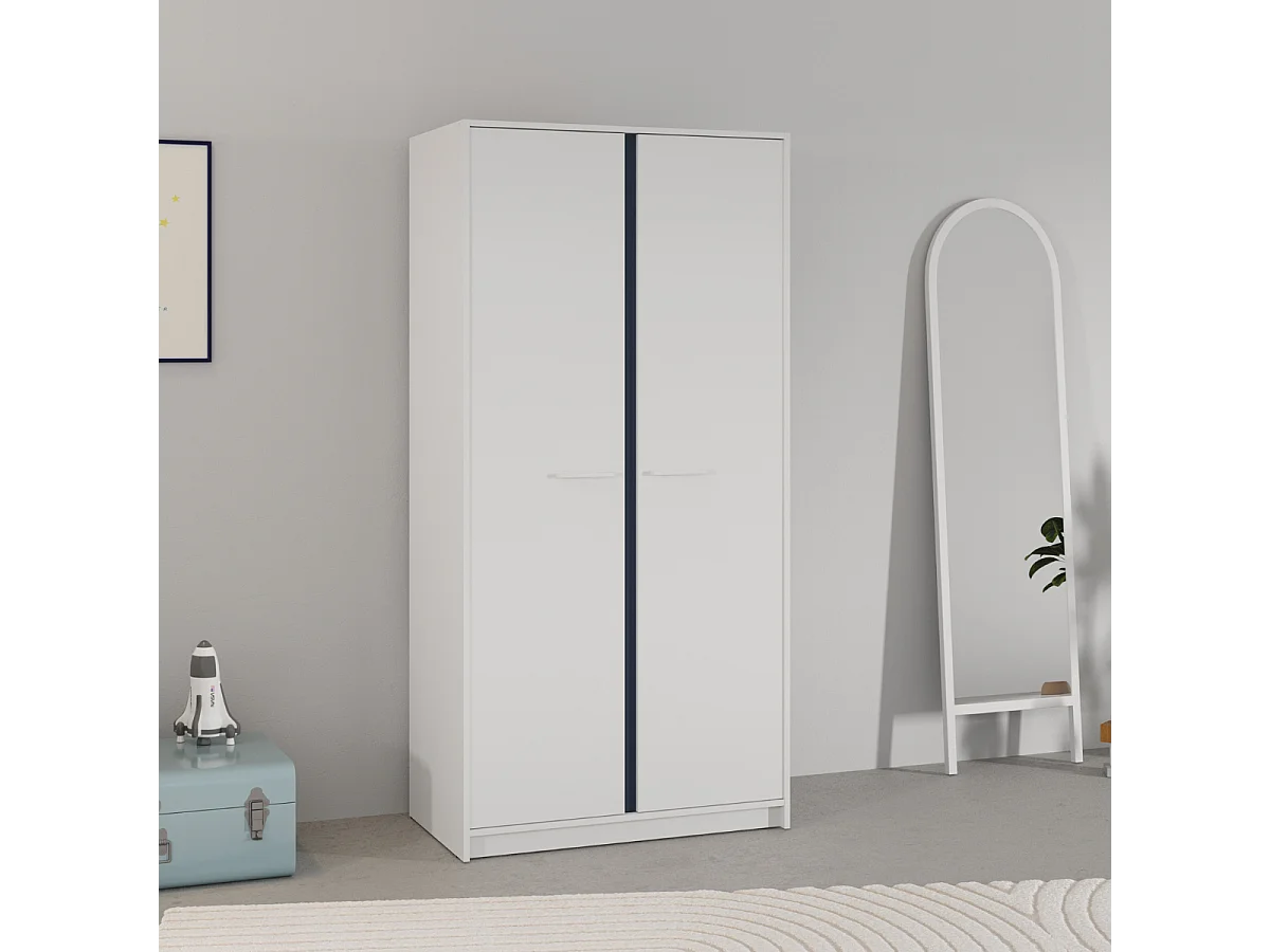 Kleiderschrank mit 2 Türen in Weiß, wendbare Kanten in Sturmblau oder Aprikose, Höhe 180,9 cm - ARLO