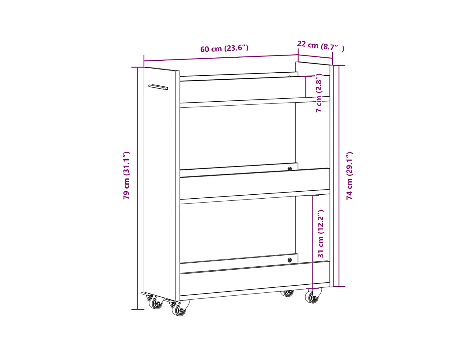 Kleiderschrank mit Rollen, braune Eiche, 60 x 22 x 79 cm, Holzwerkstoff