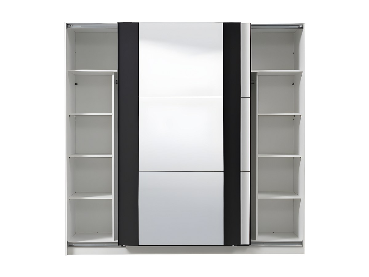Kleiderschrank mit Schiebetüren & Spiegel SUTERA - B. 217 cm - Weiß & Schwarz