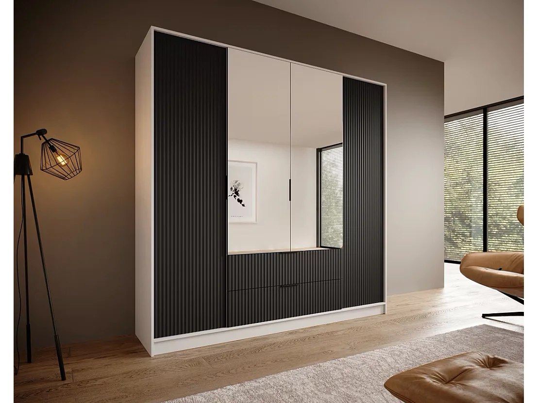 Kleiderschrank Norbert (200cm)/Weiss&Schwarz