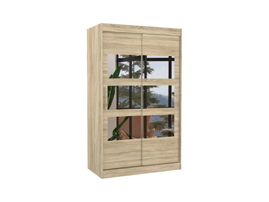 Kleiderschrank Solvado (120cm)/Schiebetüren/Spiegel/Sonoma