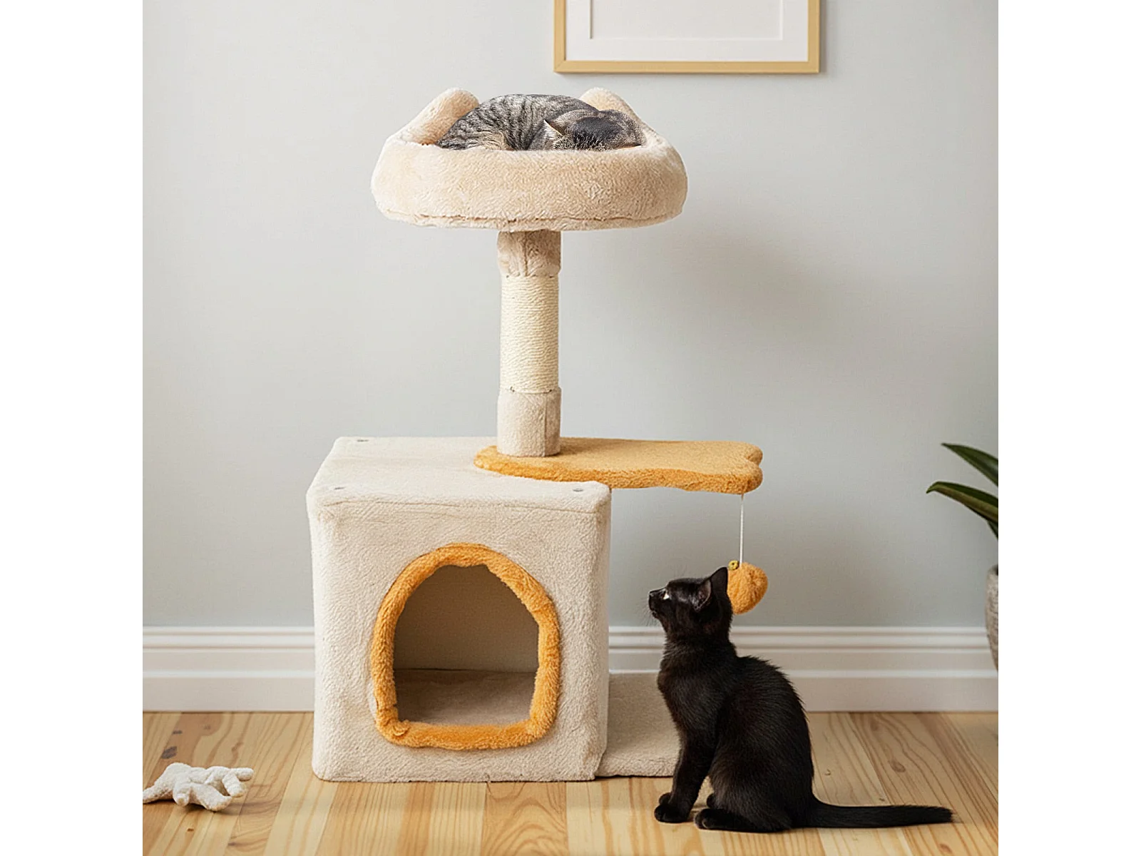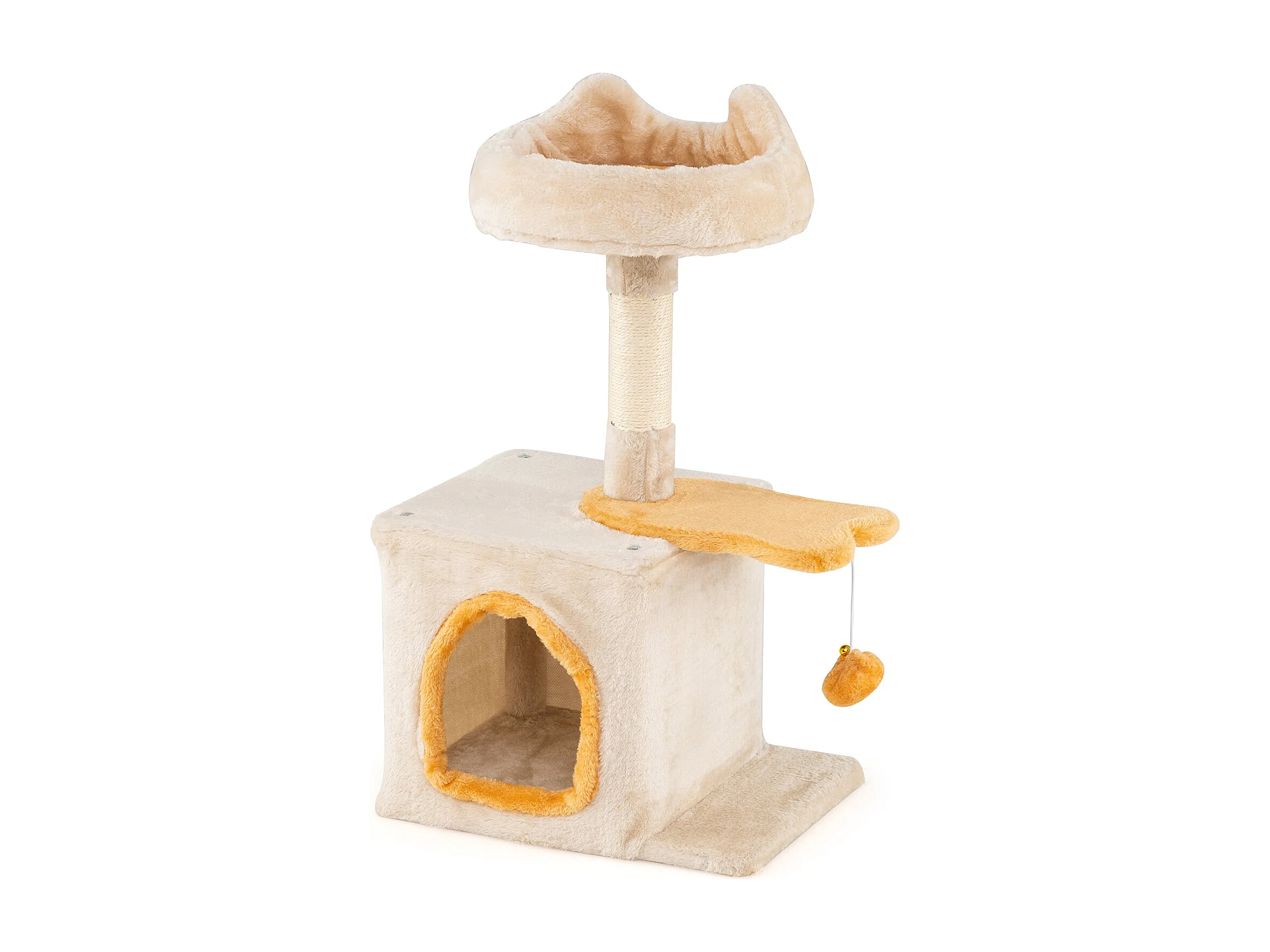 Klein Kratzbaum mit Plüschsitz & Ball & Sisal-Kratzsäulen Katzenbaum Katzenkratzbaum Beige