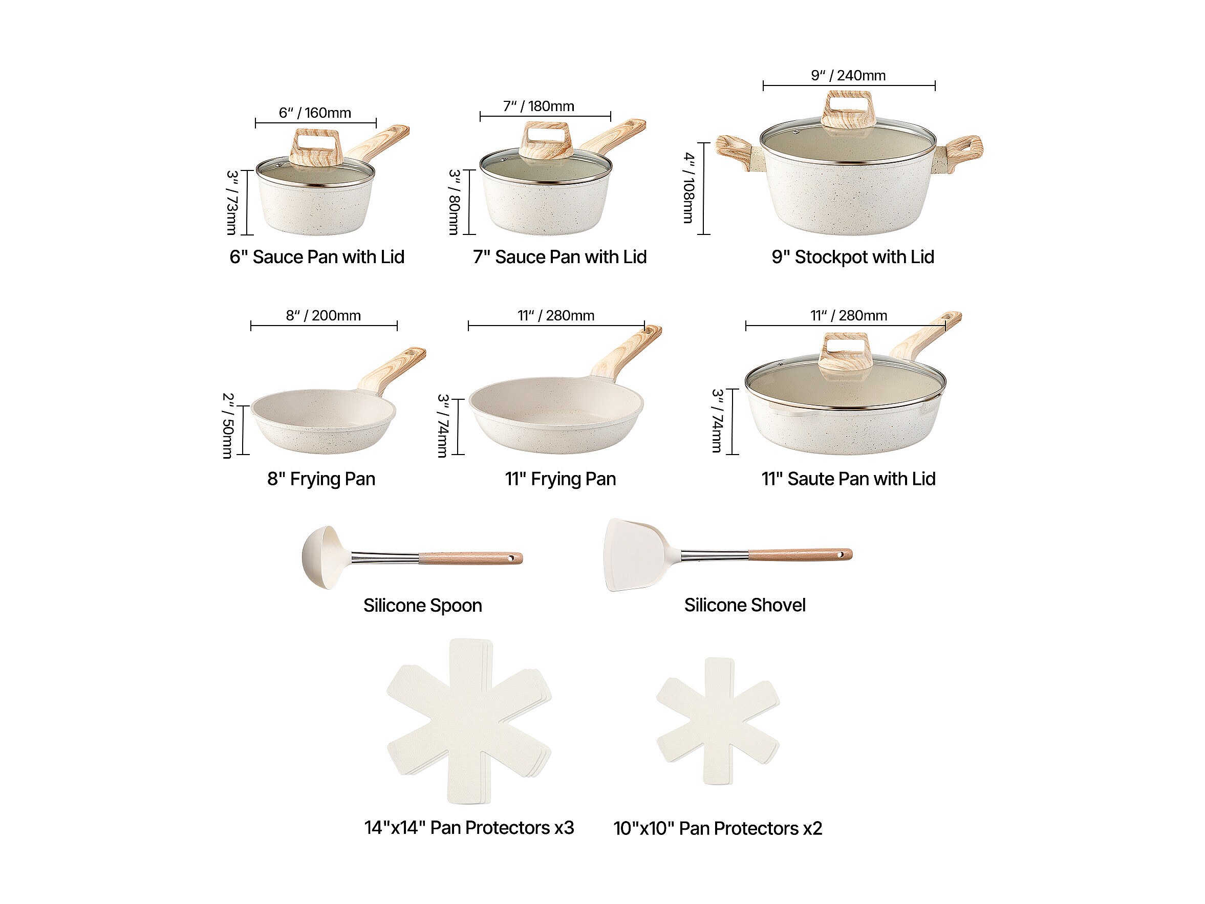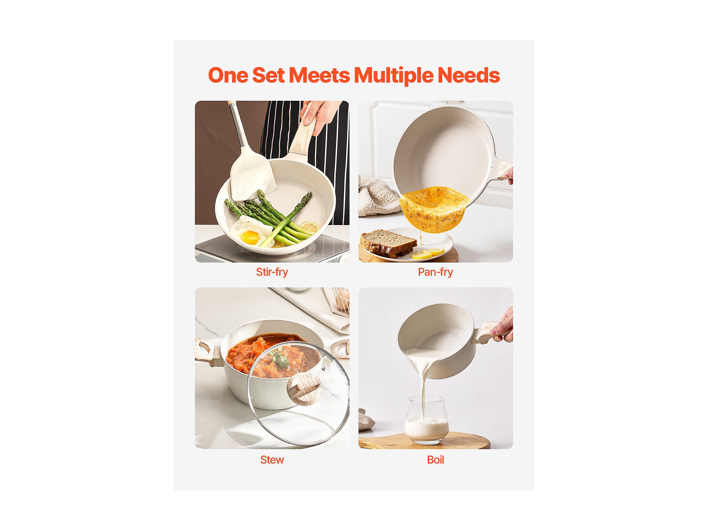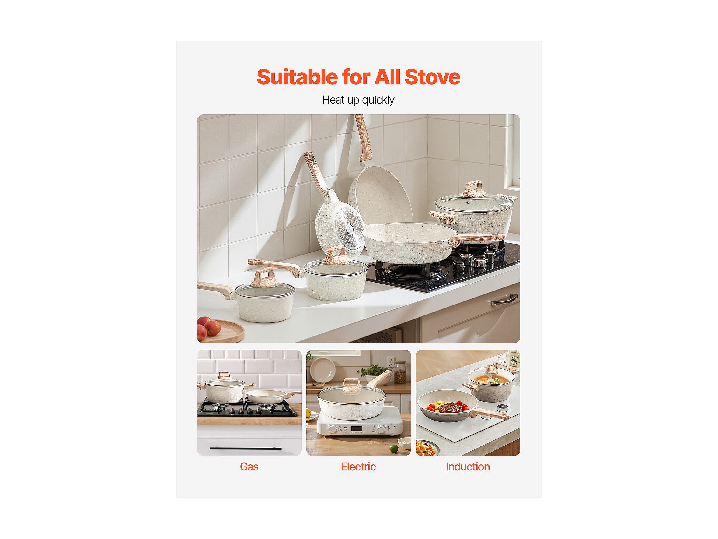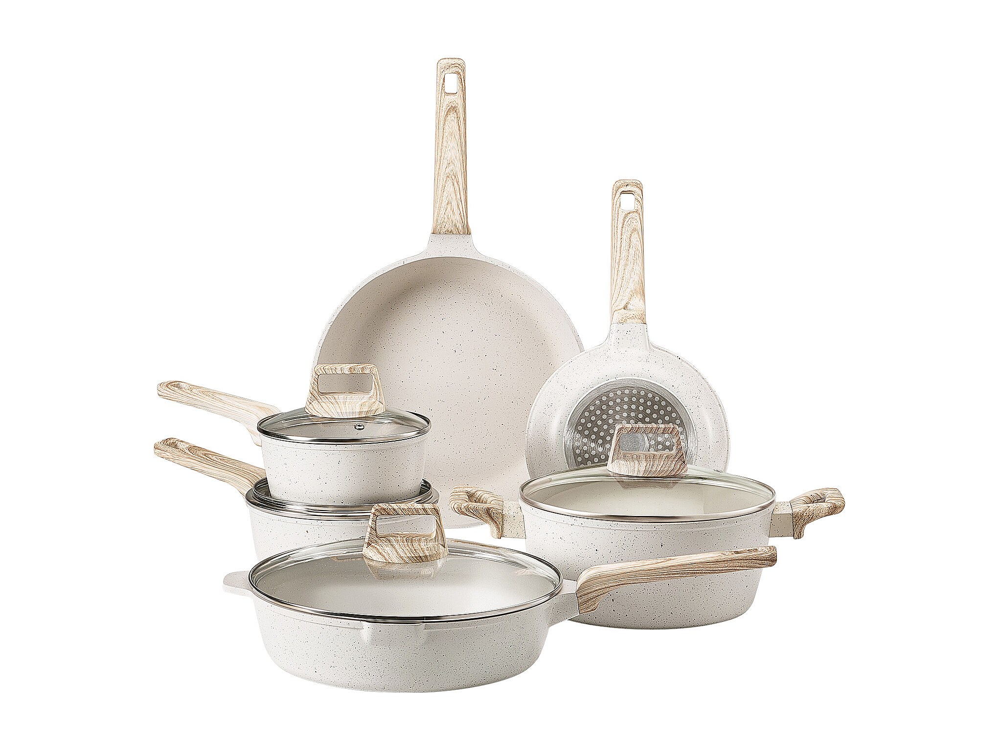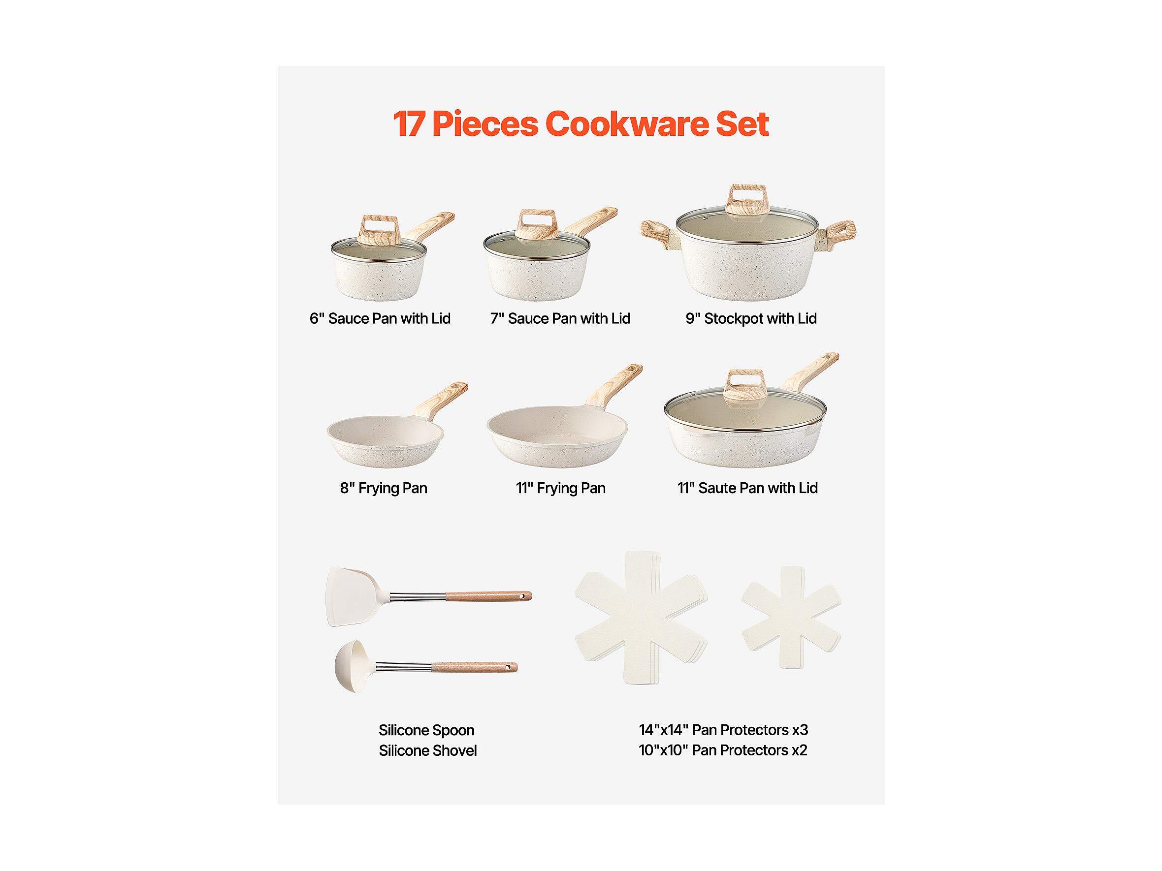 Kochgeschirr SucceBuy 17-teiliges, Induktionsgeeignetes Granit-Kochgeschirrset mit Antihaftbeschichtung, Bratpfannen, Töpfen, Sauteuse, Weiß