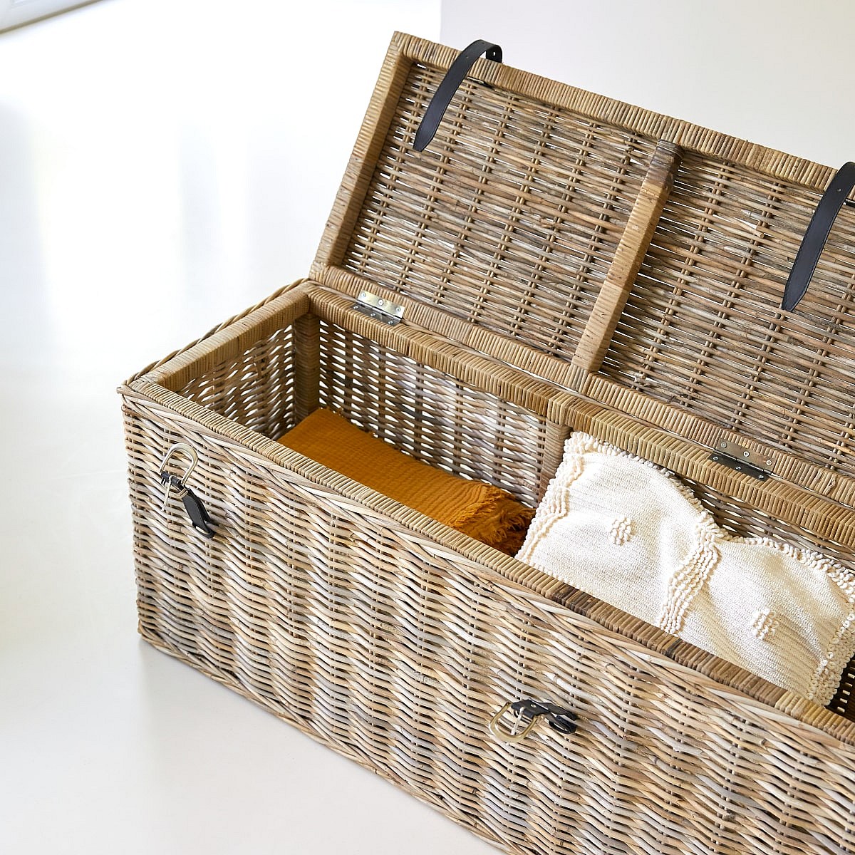 Koffer Truhe aus Rattan hell grau 150 cm Schlafzimmer Neu Tikamoon