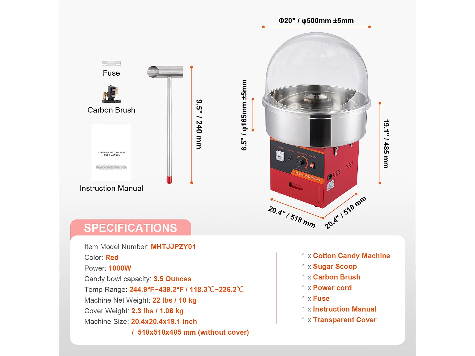 Kommerzielle Zuckerwattemaschine SucceBuy , Zuckerwattemaschine 1000 W mit Deckel, Rot