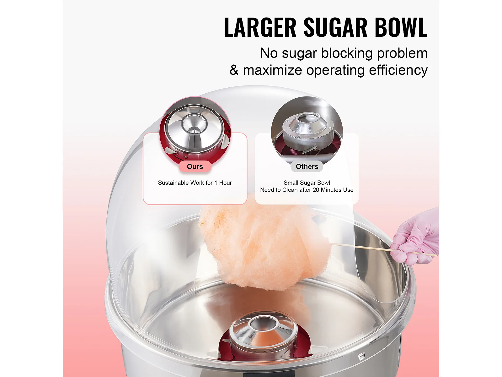 Elektrische Zuckerwattemaschine SucceBuy Gewerbliche Maschine mit 52 cm Edelstahlschüssel Zuckerschaufel und Schublade für Kindergeburtstage Familienfeiern, 1000 W