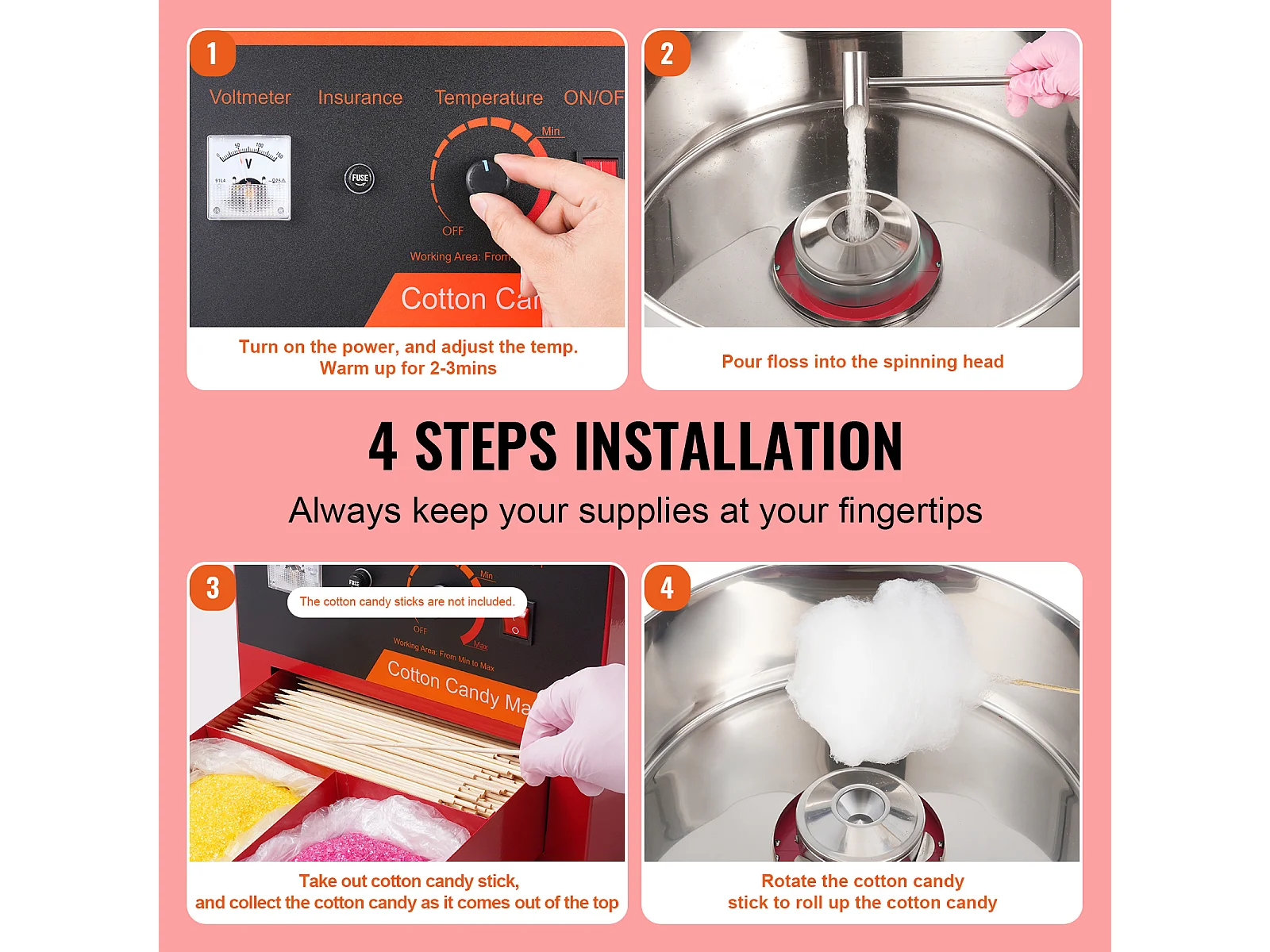 Kommerzielle Zuckerwattemaschine SucceBuy, Zuckerwattemaschine 1000 W,für Zuhause, Kindergeburtstag, Familienfeier, Rot