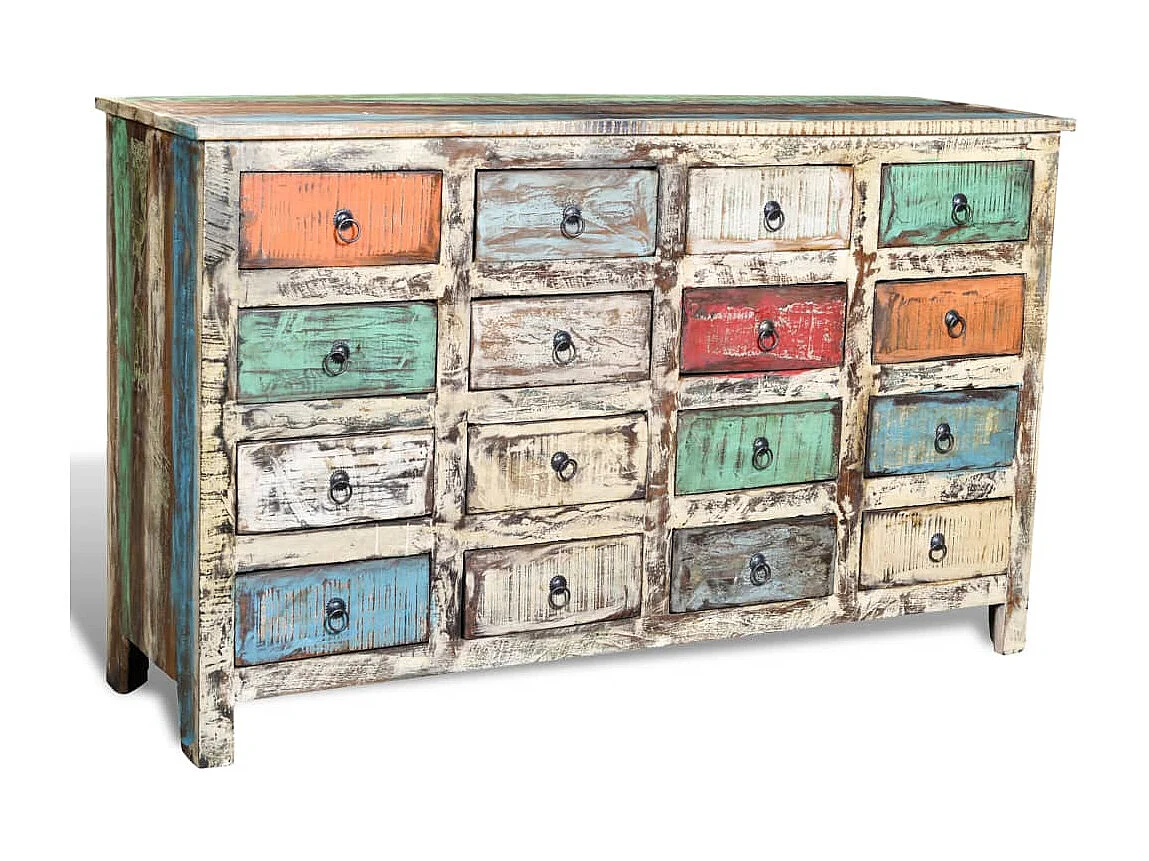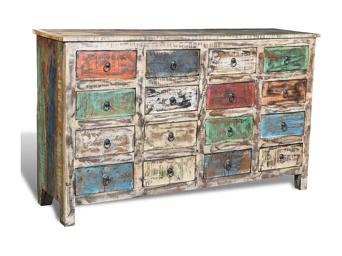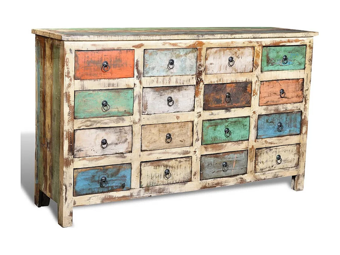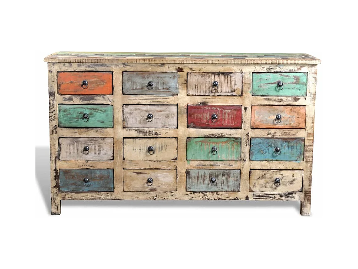 Kommode Altholz Massivholz Mehrfarbig mit 16 Schubladen