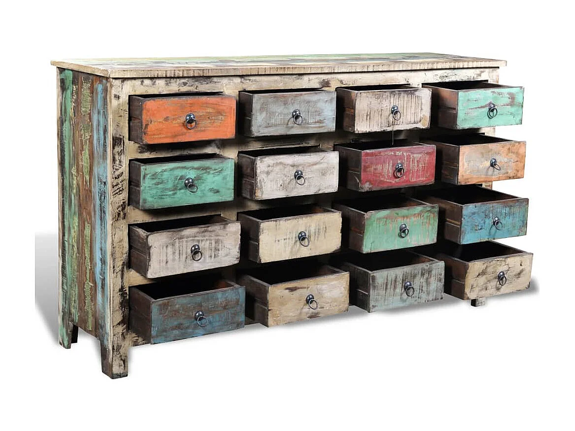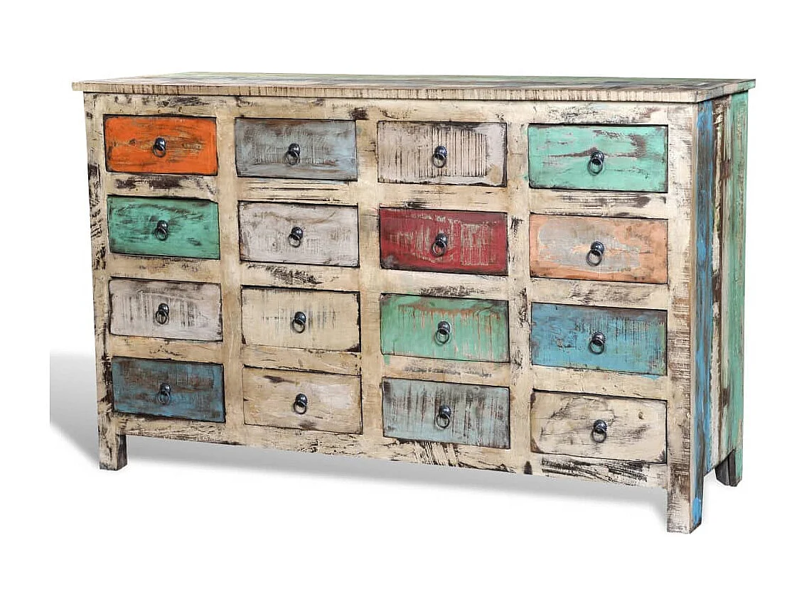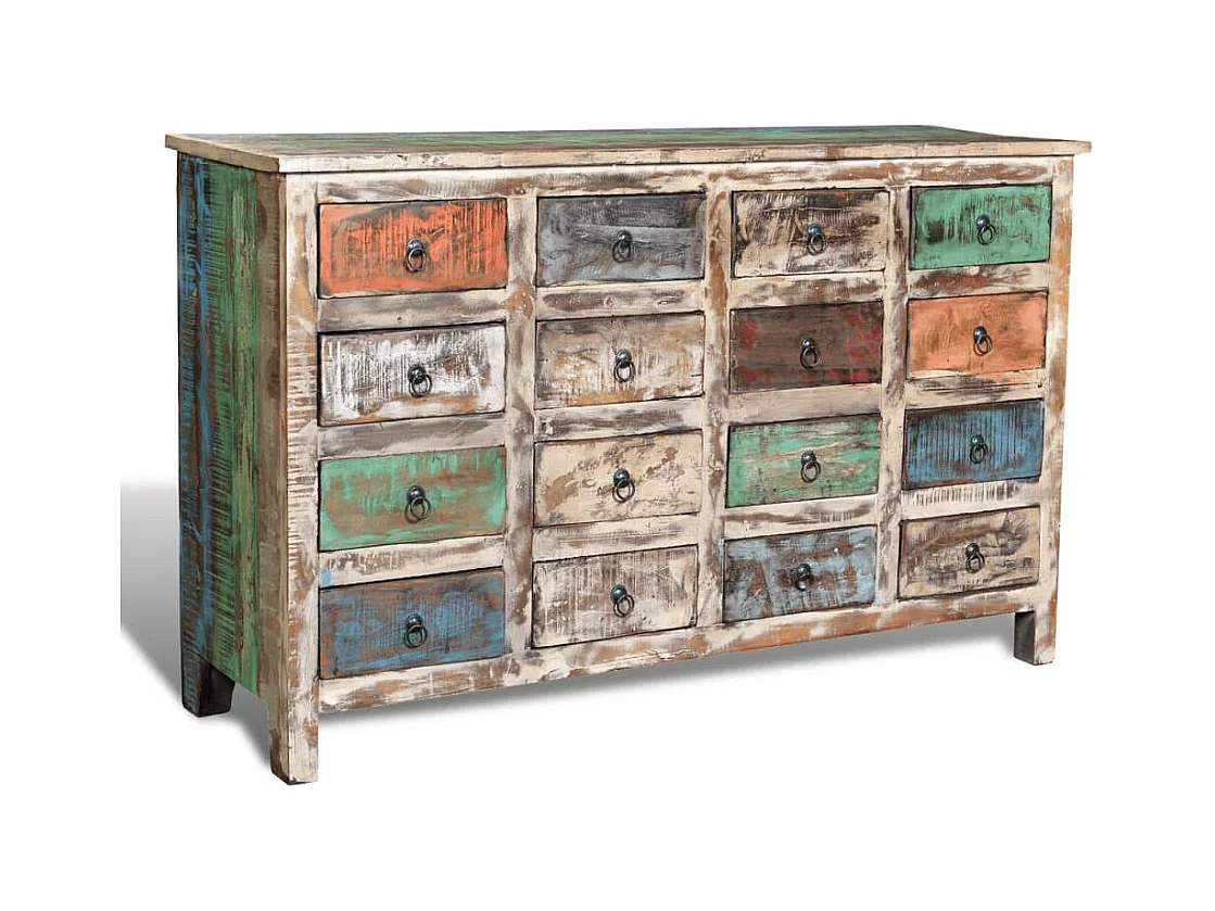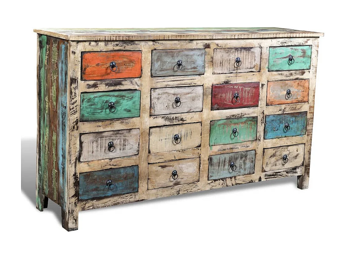 Kommode Altholz Massivholz Mehrfarbig mit 16 Schubladen