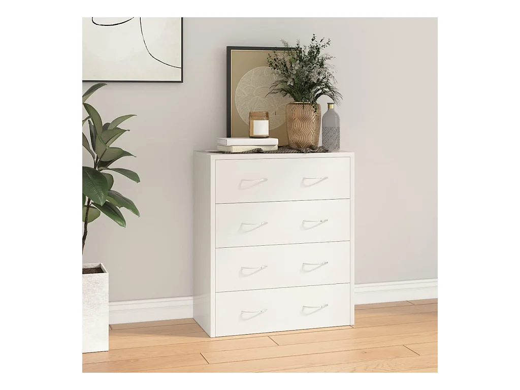Kommode mit 4 Schubladen 60x30,5x71 cm Hochglanz-Weiß