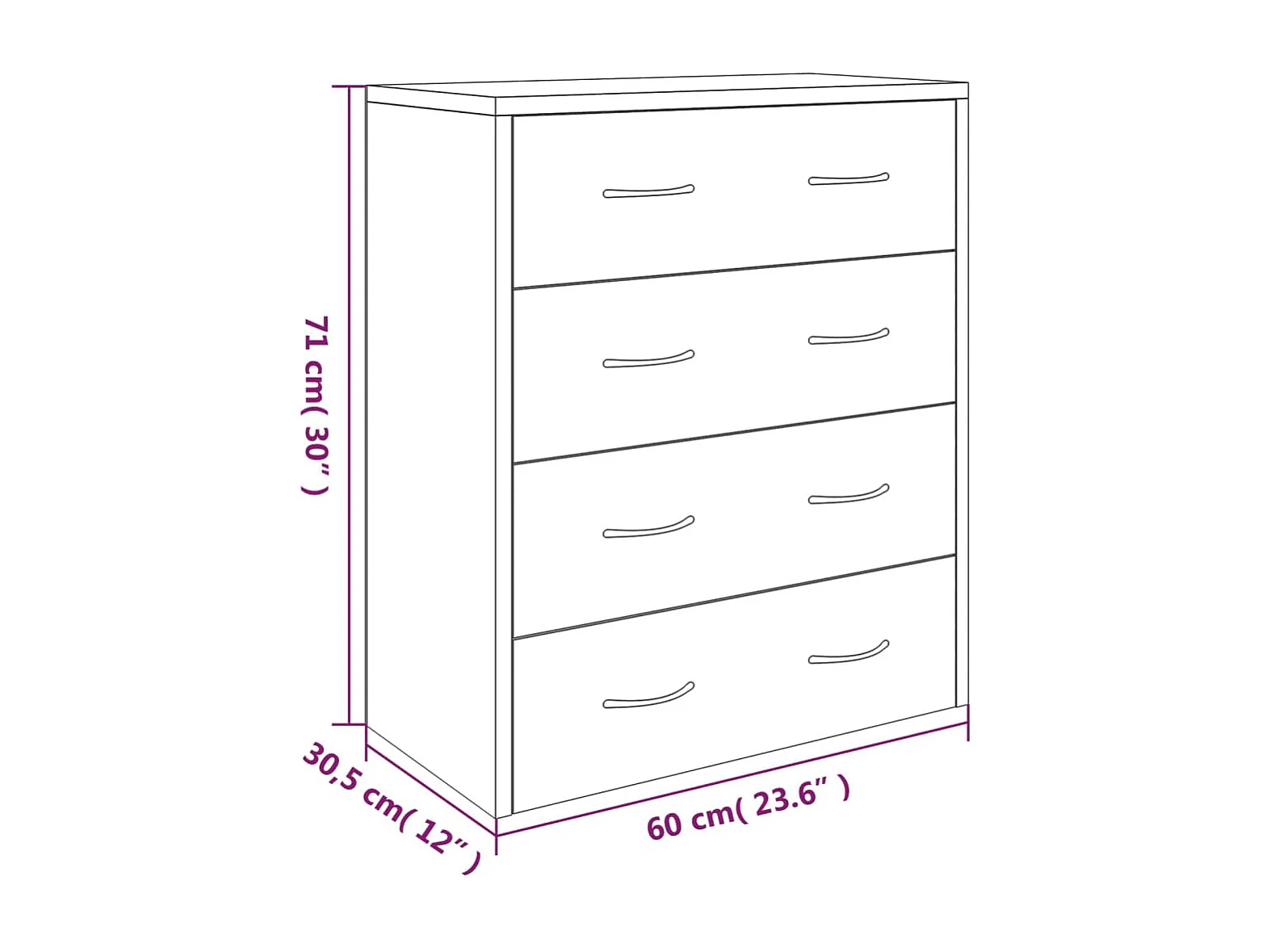 Kommode mit 4 Schubladen 60×30,5×71 cm Weiß