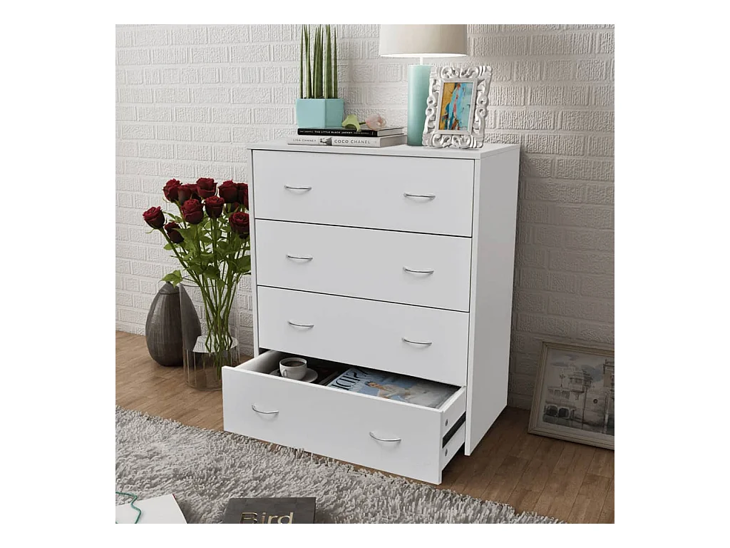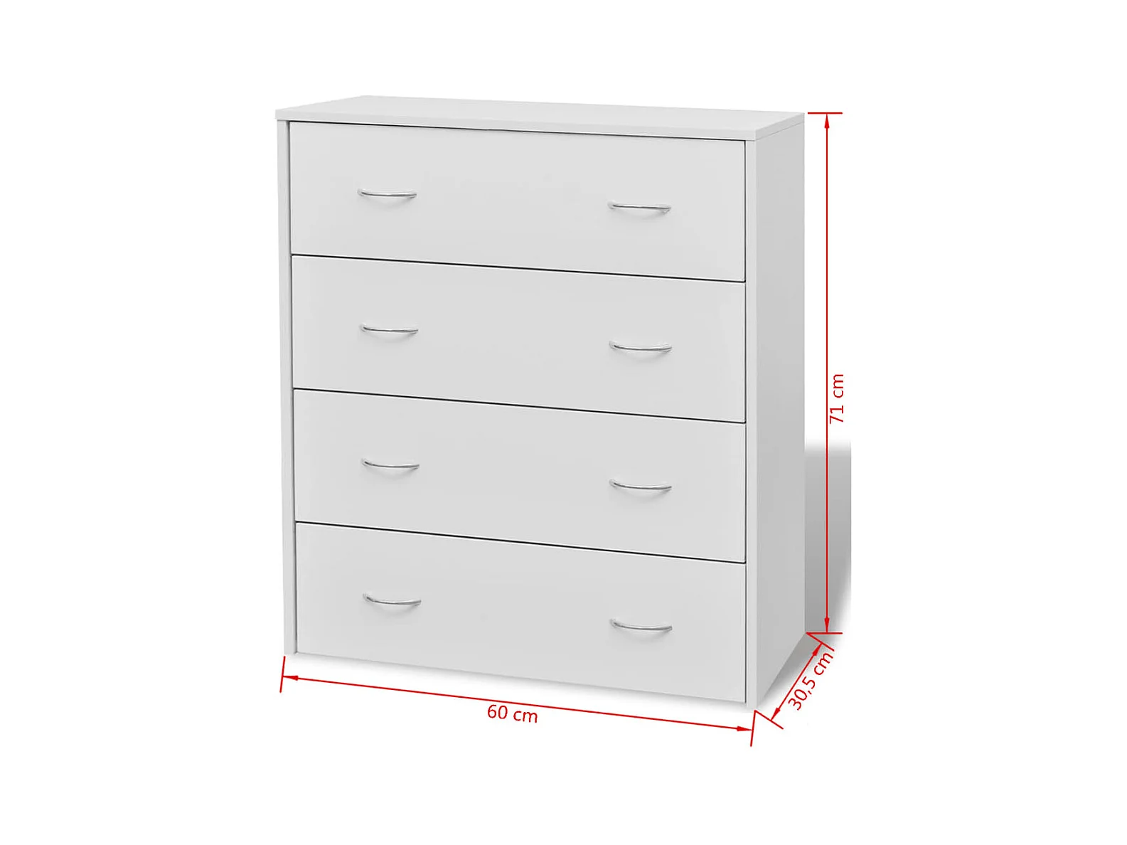 Kommode mit 4 Schubladen 60×30,5×71 cm Weiß