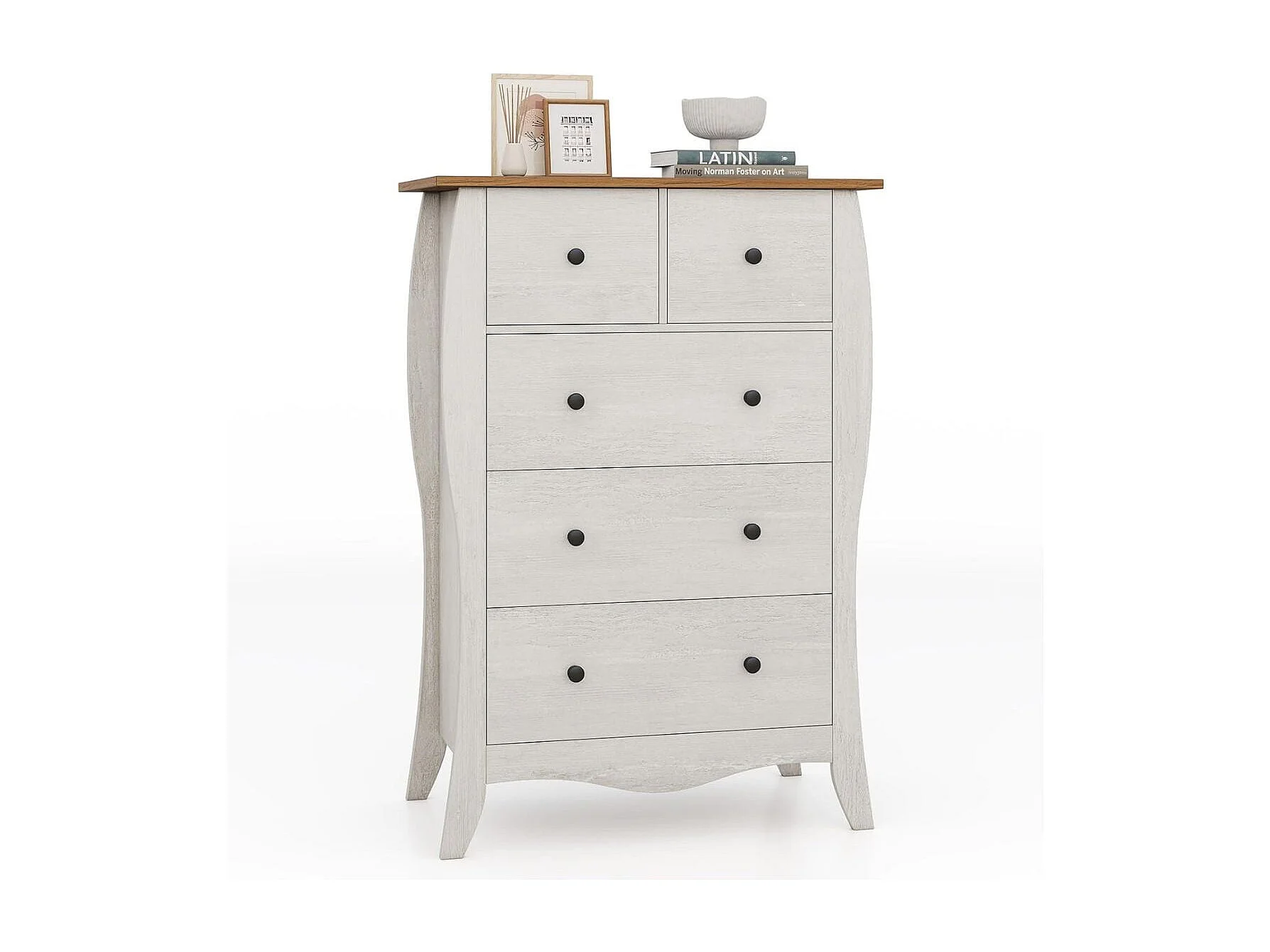 Kommode mit 5 Klappbaren Stoffschubladen Sideboard im Landhausstil Schubladenschrank Grau