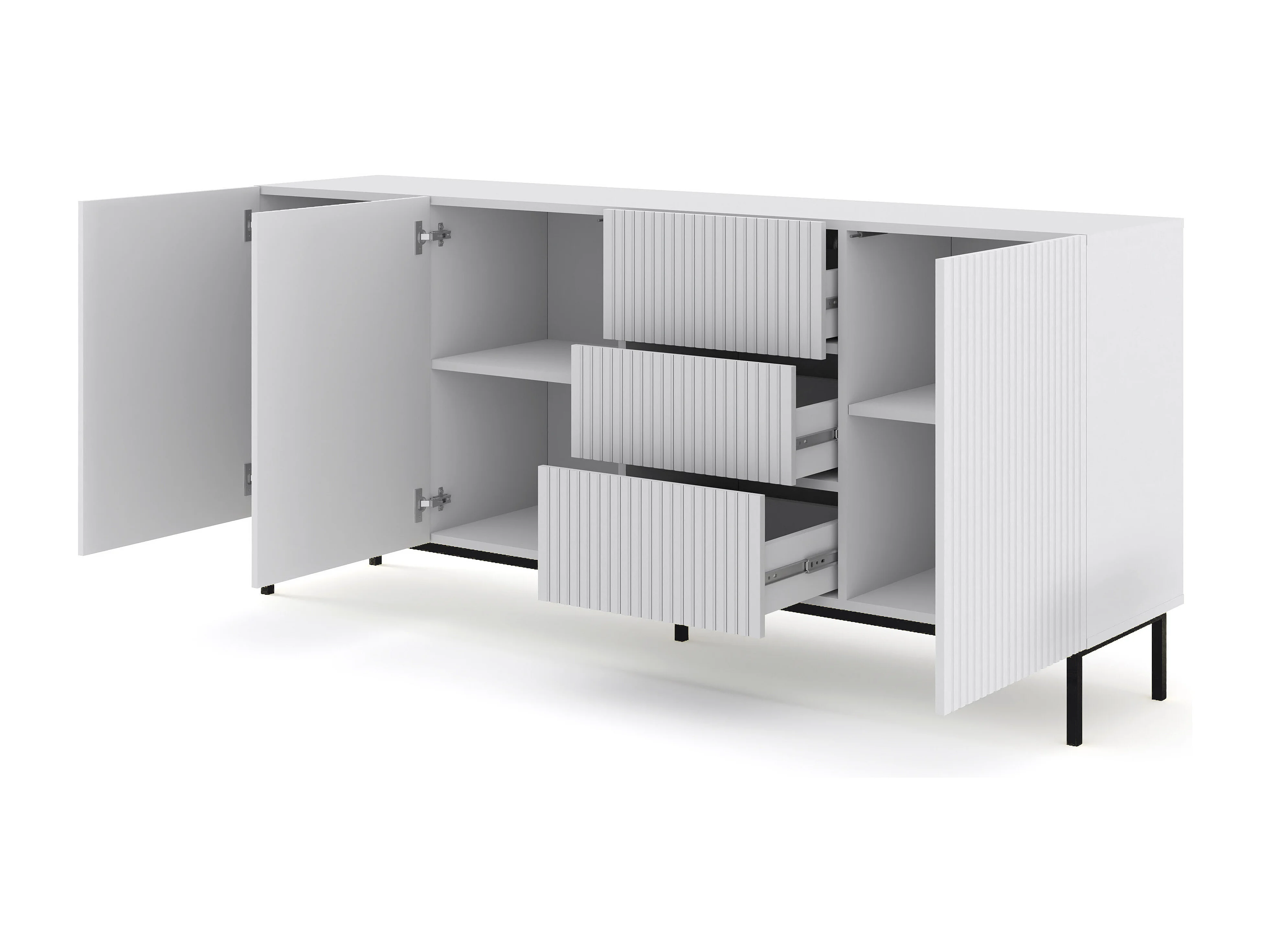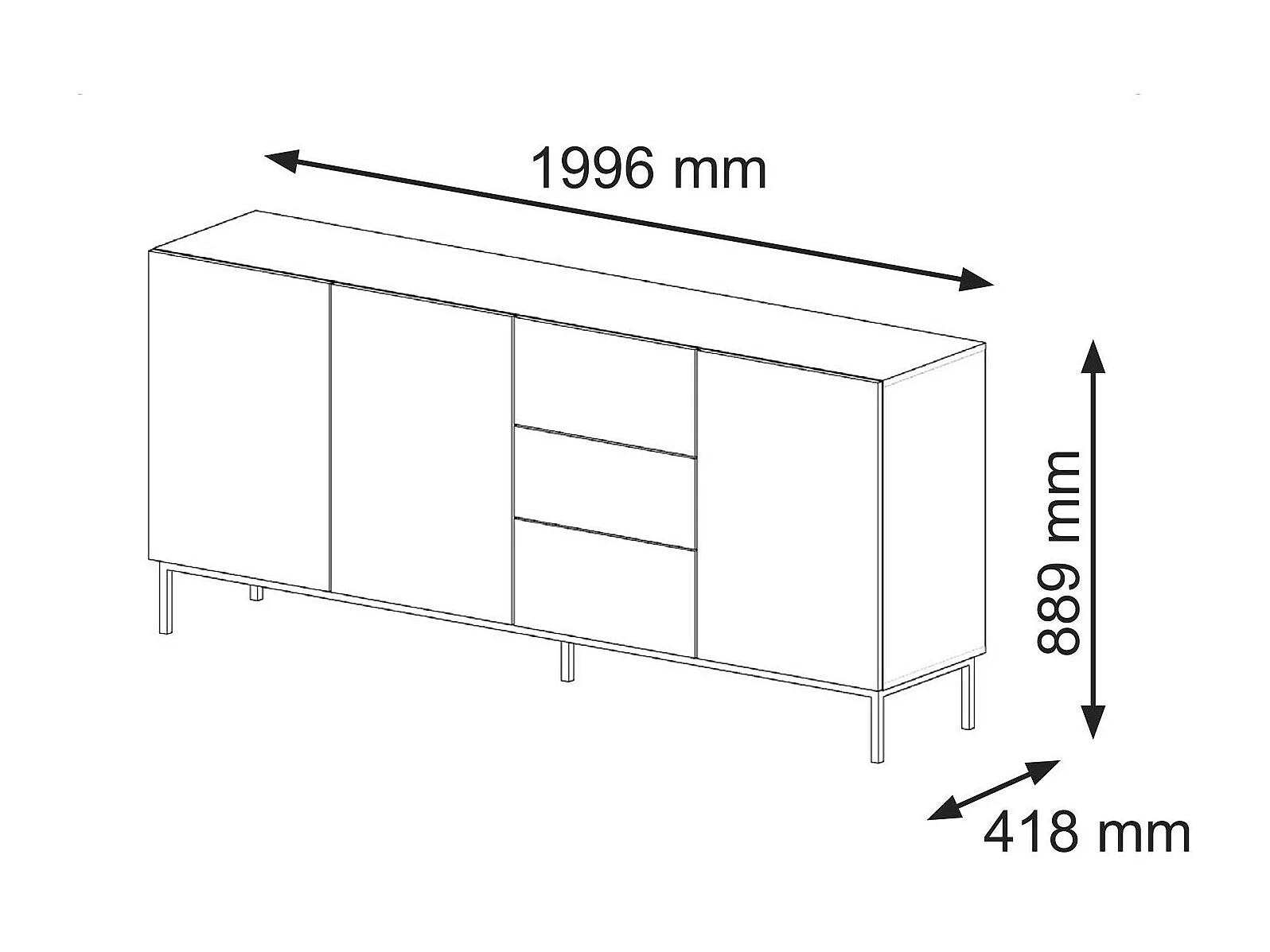 Kommode RavennaB 200x42x89 Weiß & Schwarz