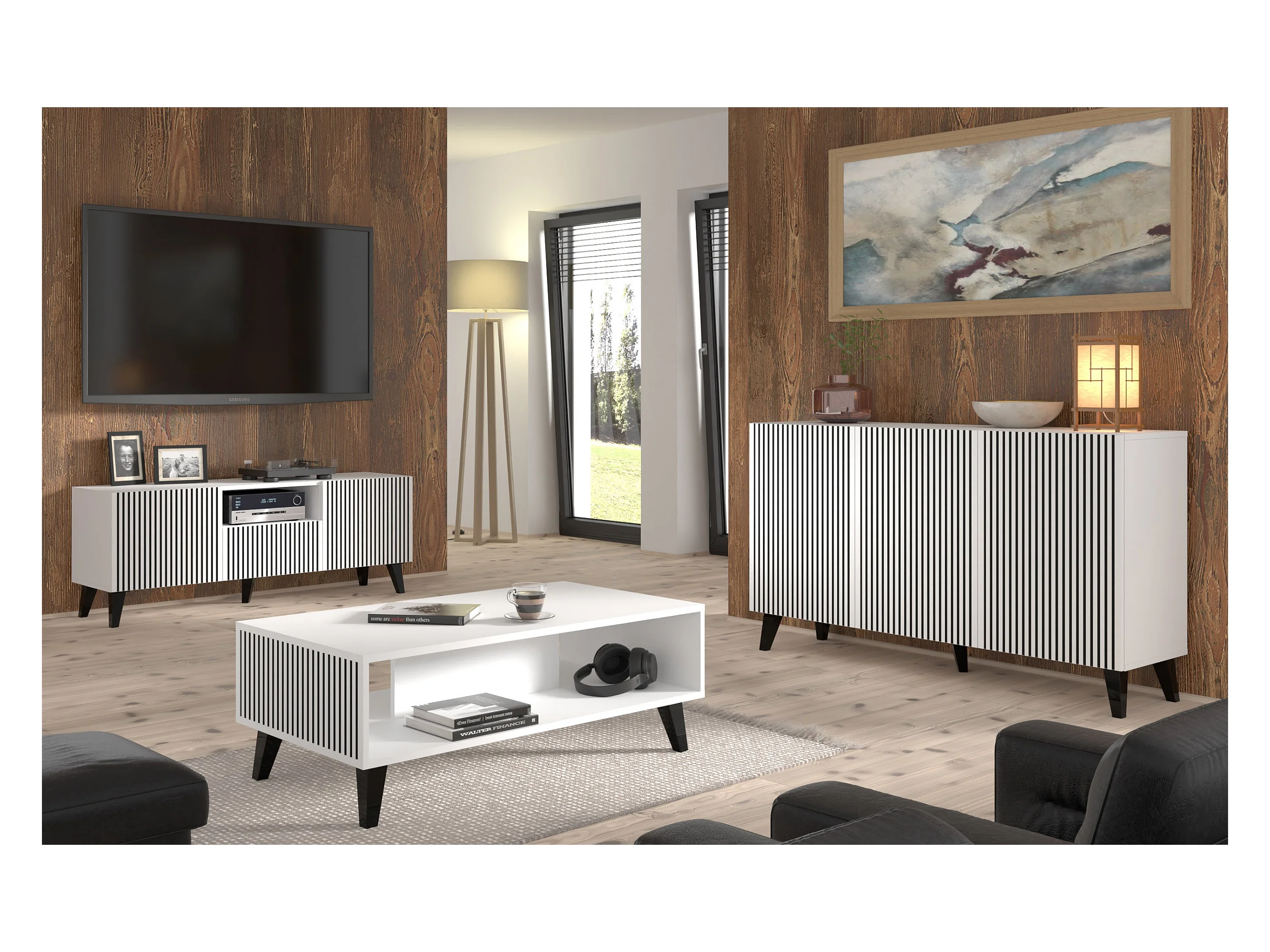 Kommode RavennaP 150x42x87 Weiß & Schwarz