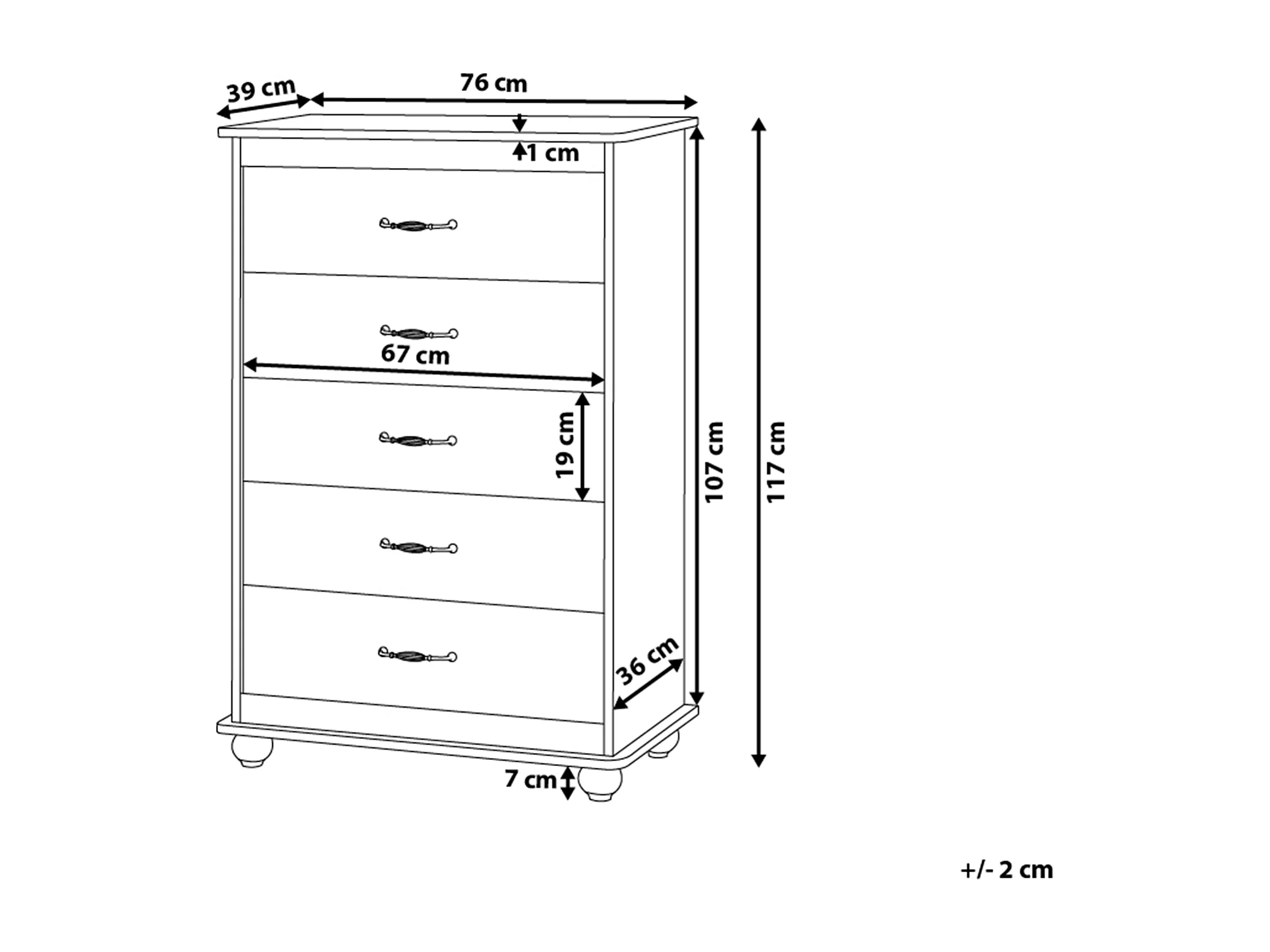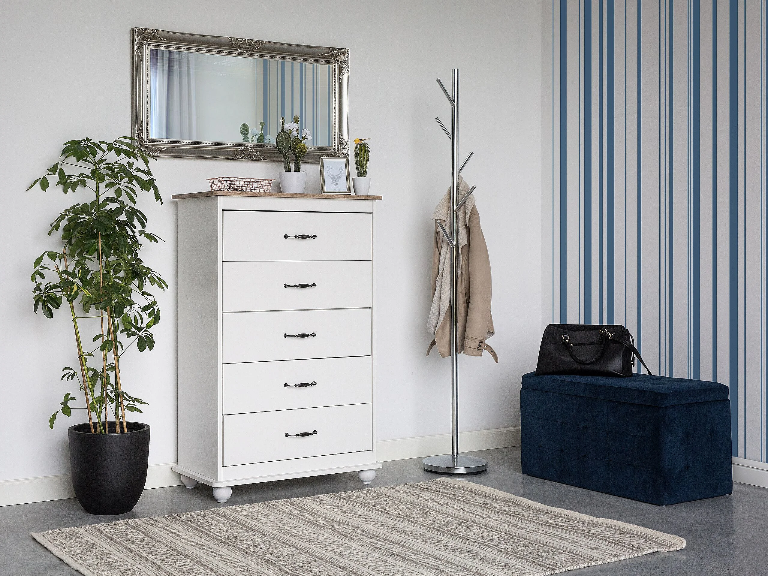 Skandinavische Kommode 5 Schubladen Spanplatte/Holz weiß Sharon