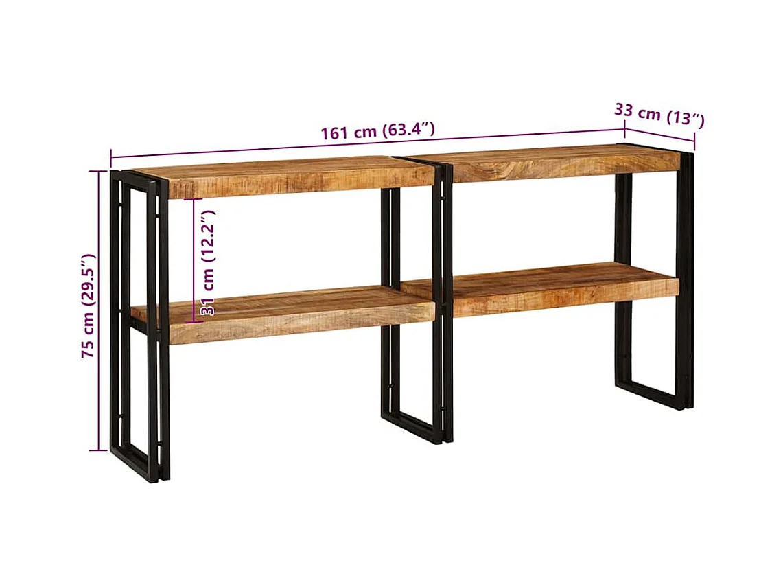 Konsolentisch Braun 120 x 33 x 75 cm Raues Mango-Massivholz