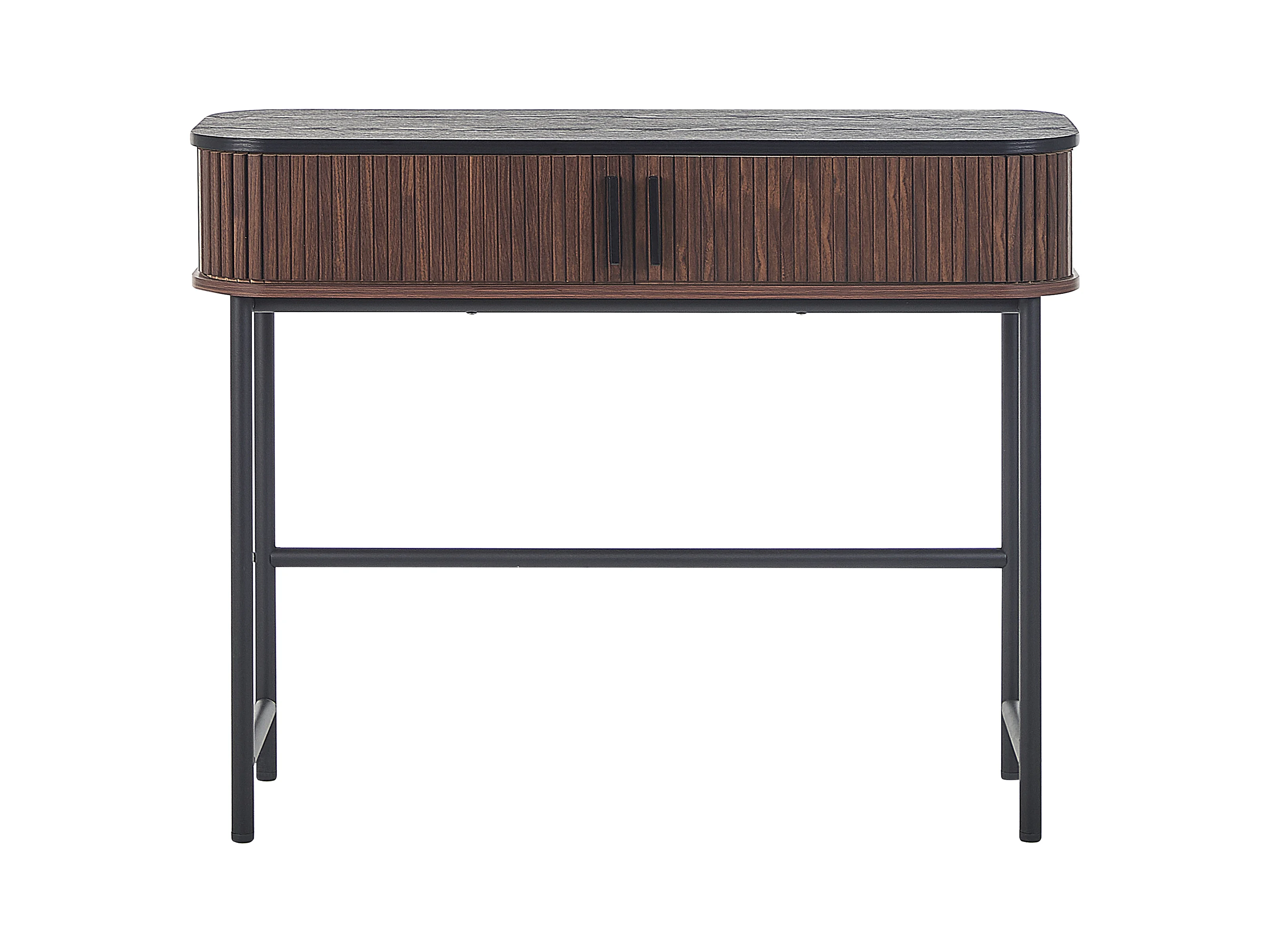 Konsolentisch dunkler Holzfarbton Metallgestell schwarz mit 2 Schiebetüren Jose