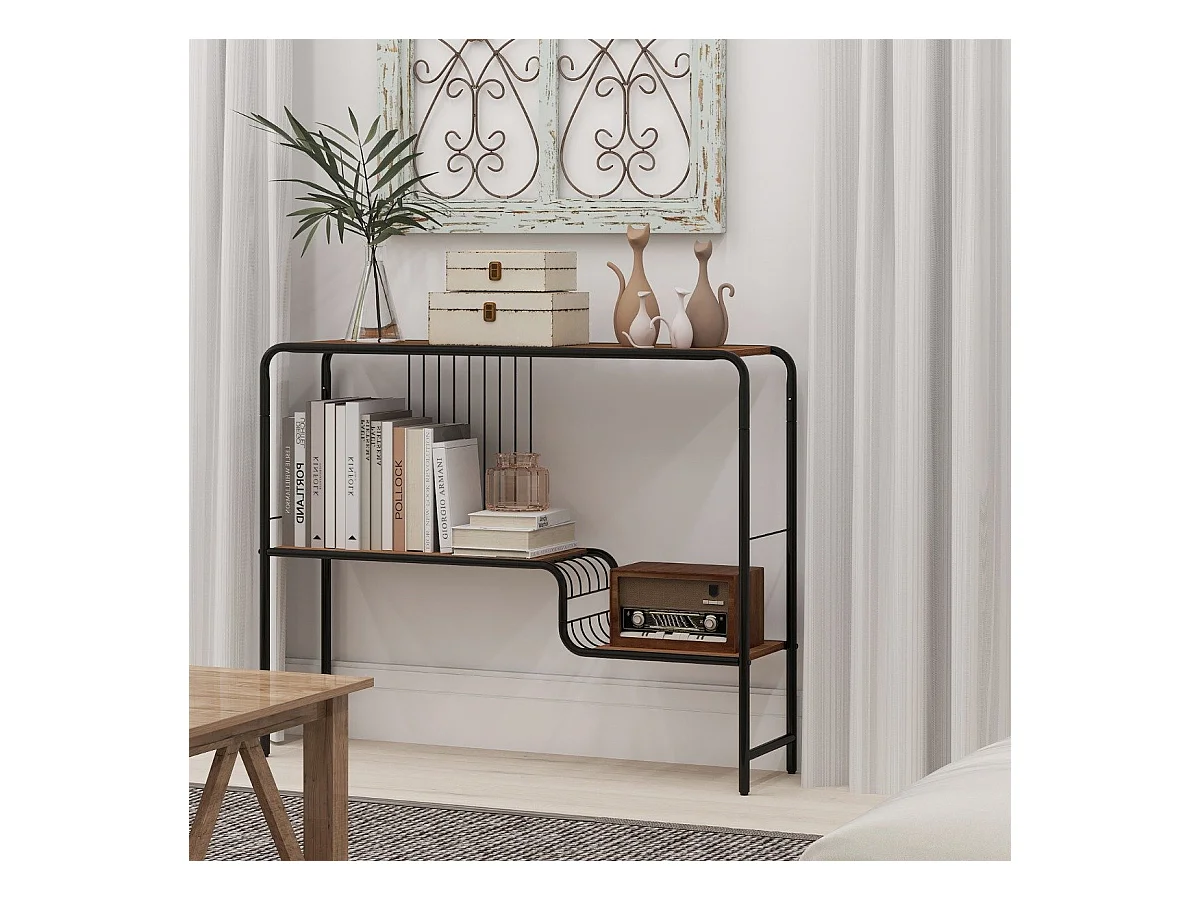 Konsolentisch Flurtisch mit 2 Ablageflächen und Metallrahmen Eingangstisch mit verstellbaren Füßen 99 x 27 x 79 cm
