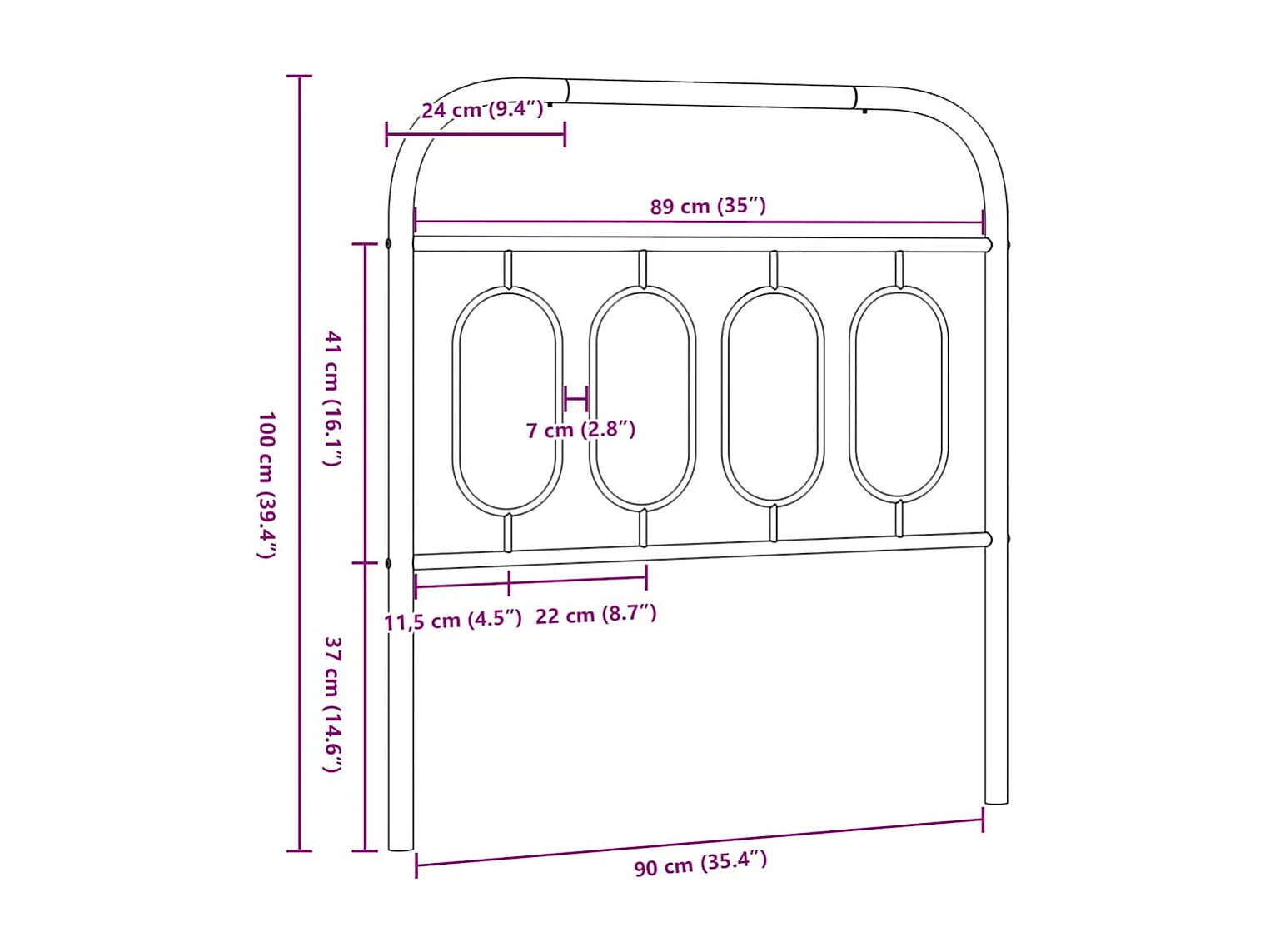 Ersatz-Kopfteil Metall Schwarz 90 cm