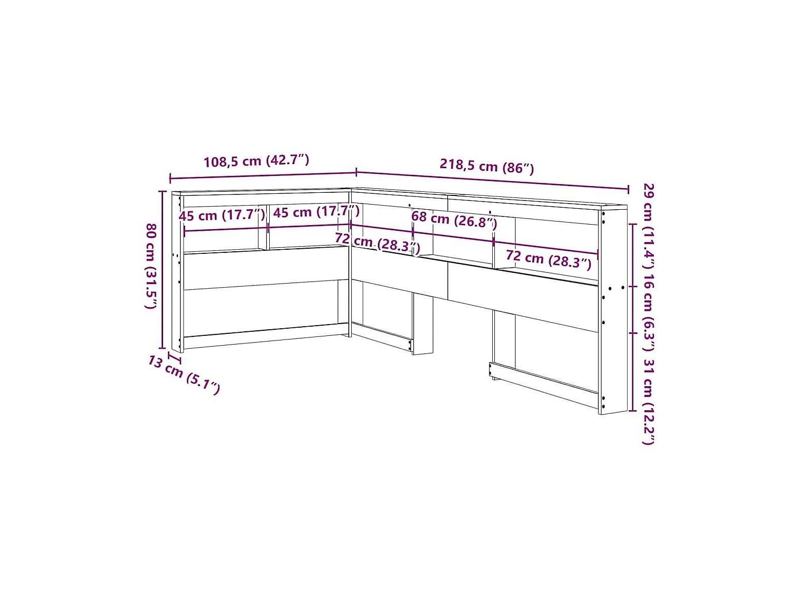 Kopfteil mit Bücherregal L-Form Wachsbraun 90 cm Massivholz