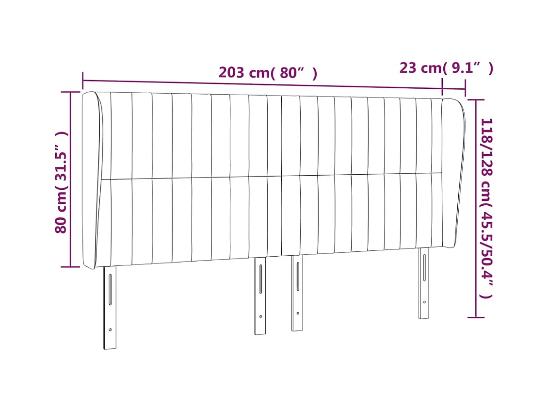 Kopfteil mit Flügeln Hellgrau 203x23x118/128 cm Samt