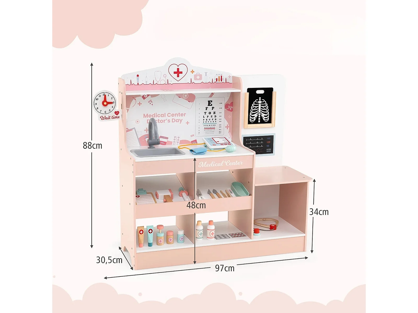 Krankenhaus Spielzeug mit Medizinischen Geräten & 24 Zubehör Holz Doktor-Spielset Rosa