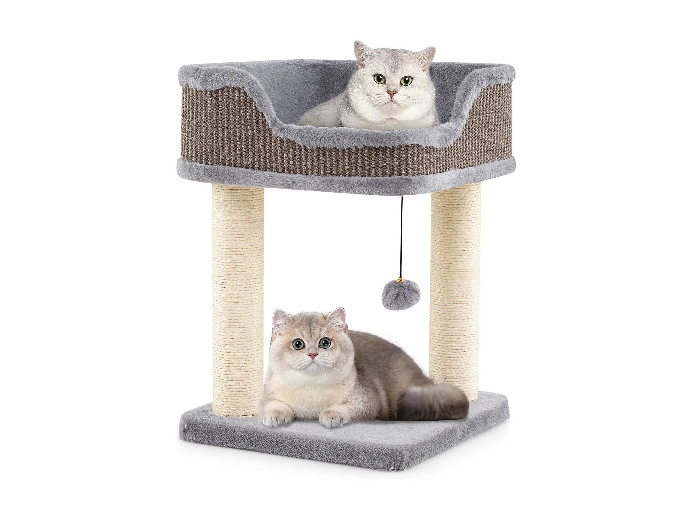 Kratzbaum Klein Katzenbaum mit großem Plüschsitz Katzenkratzbaum Holz Katzen Katzenmöbel Kletterbaum 38 x 38 x 51 cm Grau