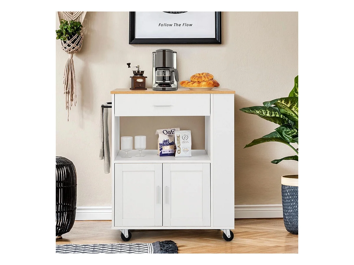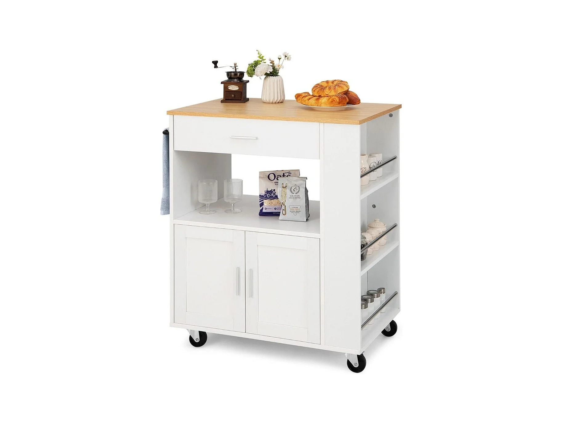 Küchenwagen mit Schrank & Ablage & Handtuchhalter & Gewürzregal Servierwagen Weiß